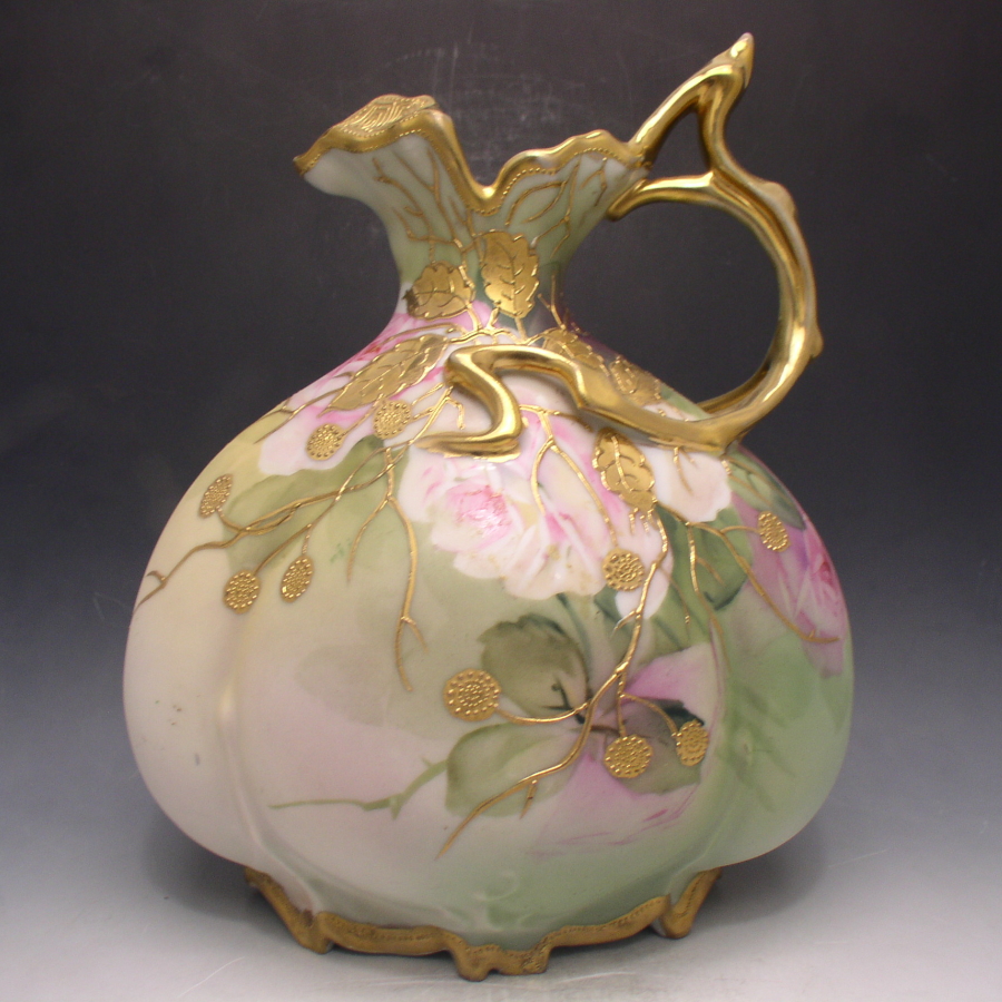 オールドノリタケの金盛薔薇文水差しです。1911年頃~1921年頃にアメリカに輸出され、約100年の時を経て日本に里帰りしてきました。