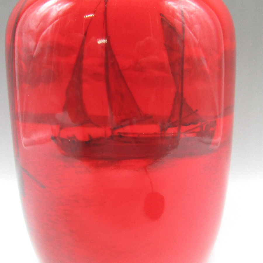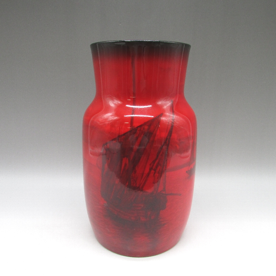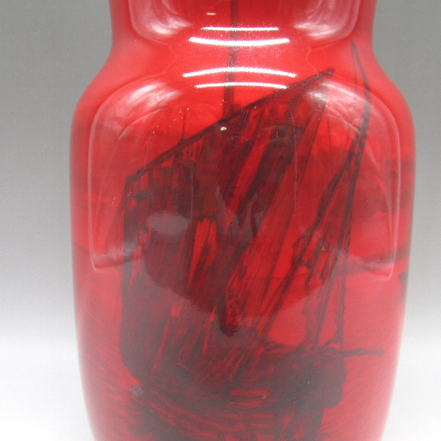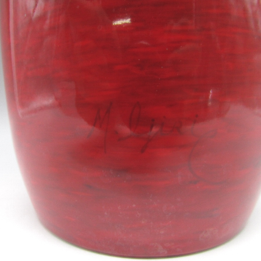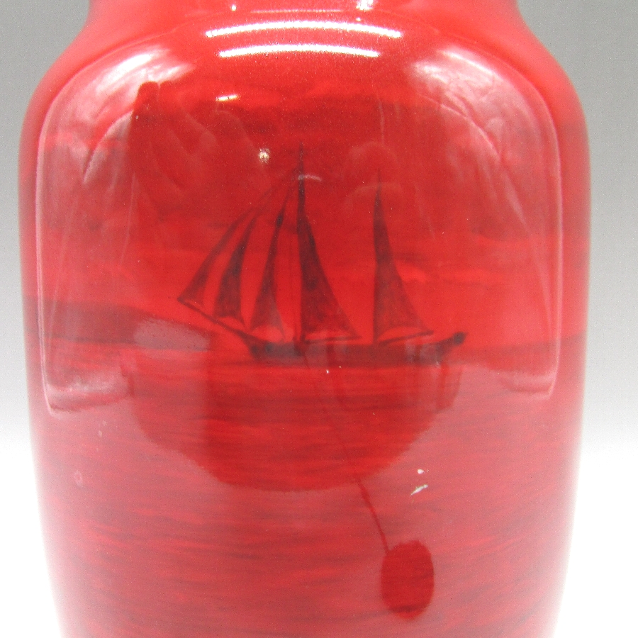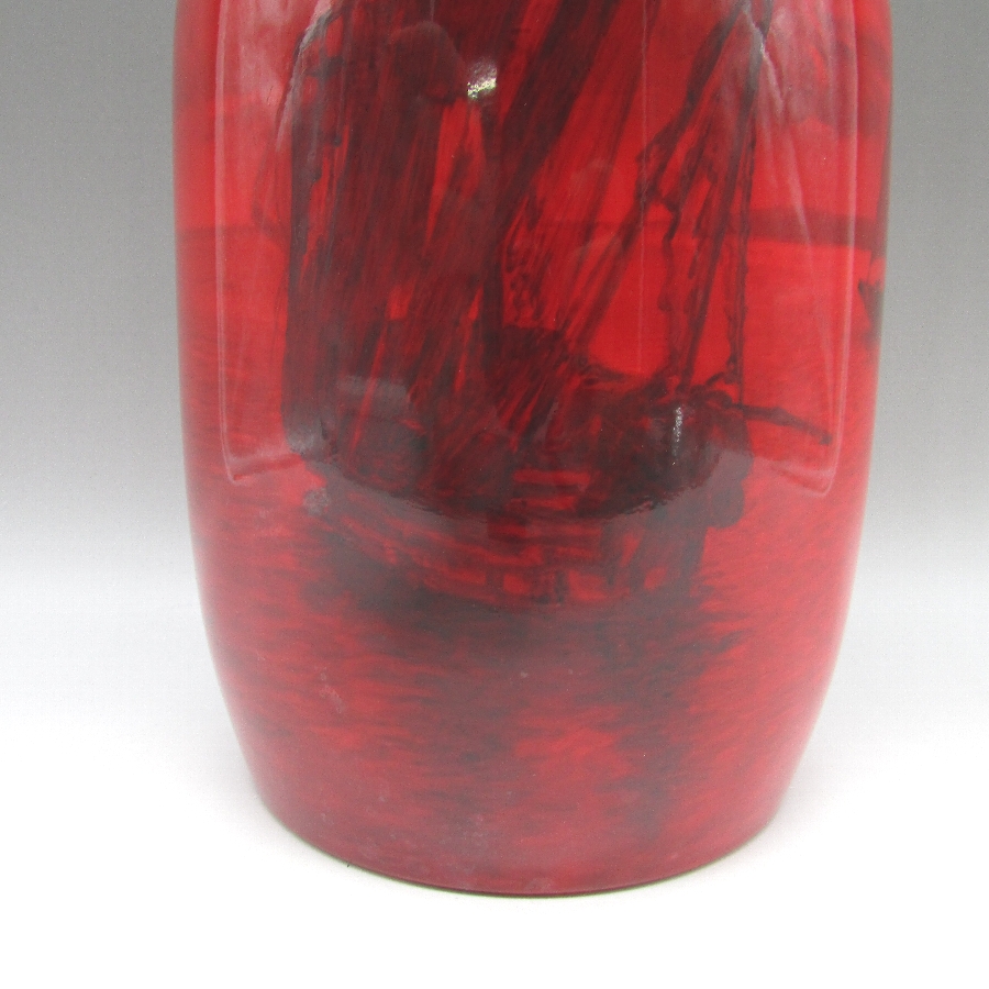 M.Ijiriサイン入り辰砂帆船文花瓶の画像