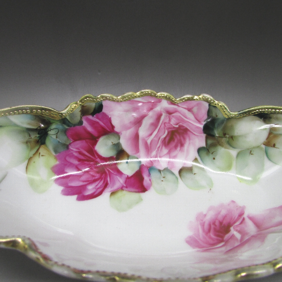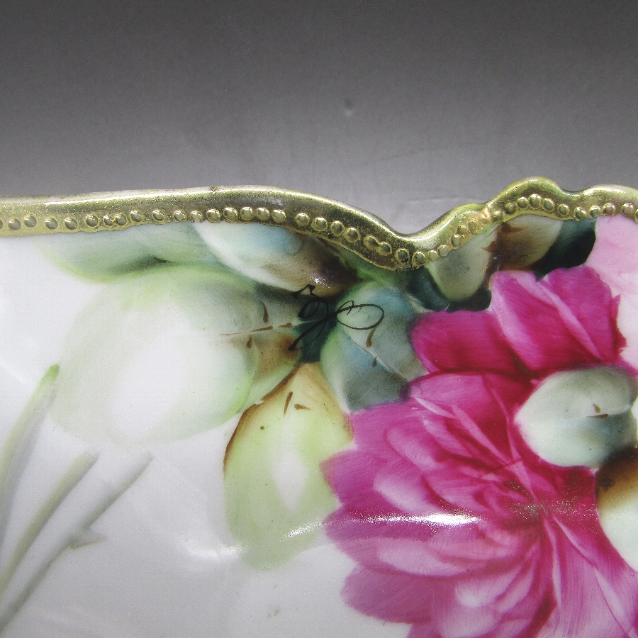 - 名称 オールドノリタケ 花押サイン入り薔薇文把手付ディッシュ