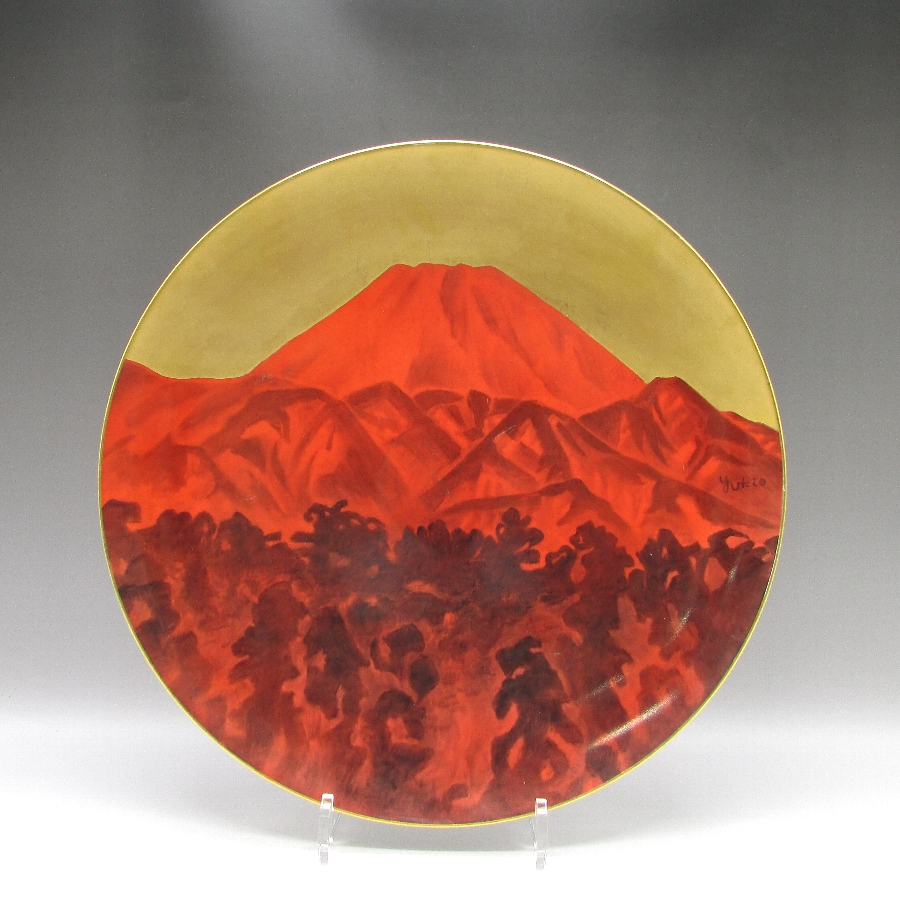 - 名称 プレミアノリタケ yukioサイン入り赤富士文飾皿