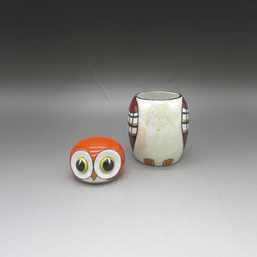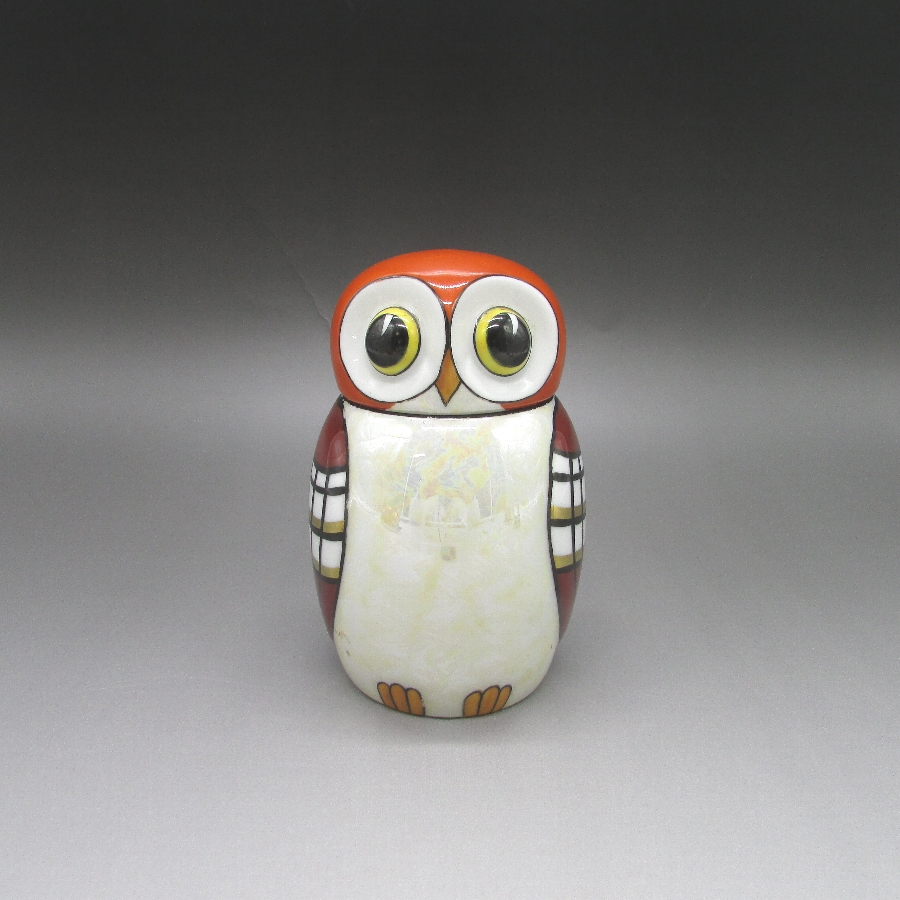 オールドノリタケの梟型ボックスです。1921年頃~1941年頃にアメリカに輸出され、約100年の時を経て日本に里帰りしてきました。オールドノリタケは現在のノリタケカンパニーが明治末期から戦前までに製造したアンティーク陶磁器の総称です。豪華絢爛な西洋風絵付け陶磁器は海外で人気を博しました。近年では、約100年という長い歳月を経て日本に里帰りしてきたことで、わが国でも大変人気が高くなっており、美術工芸品として高い地位を確保しつつあります。
