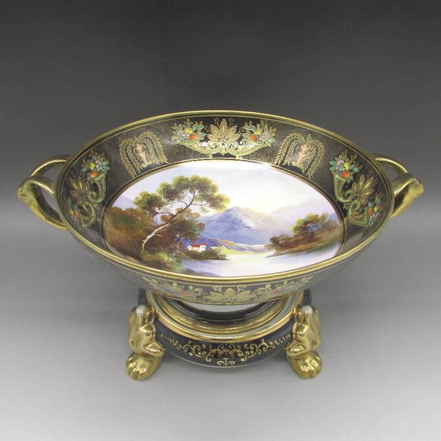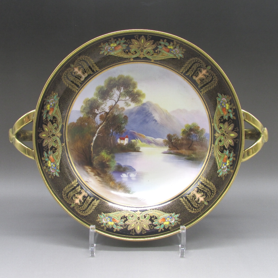 オールドノリタケ 夕焼湖畔風景文パンチボウル
