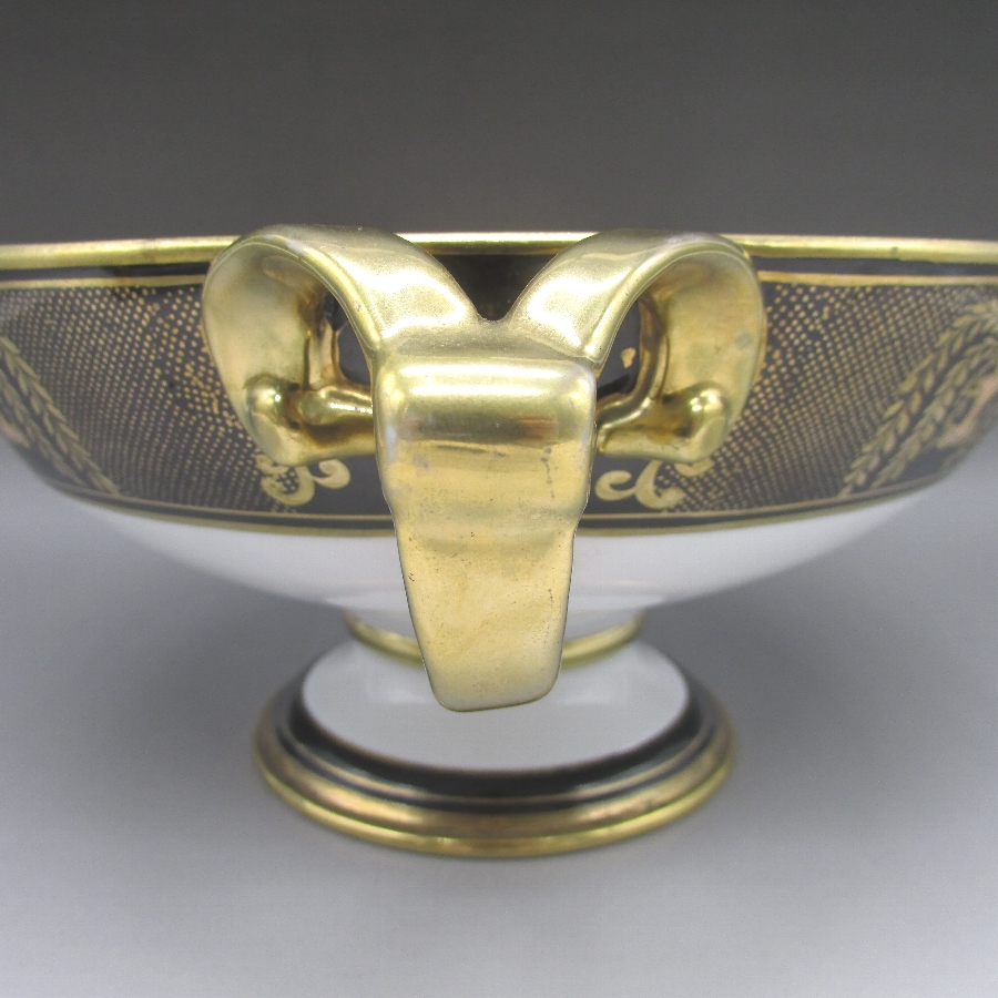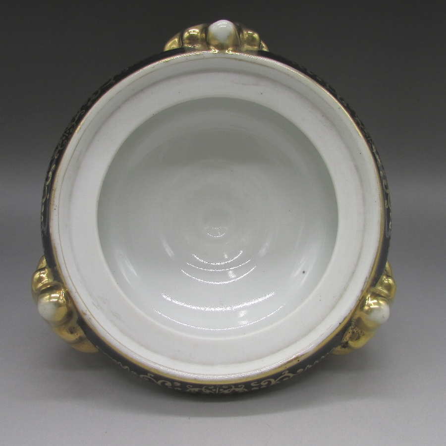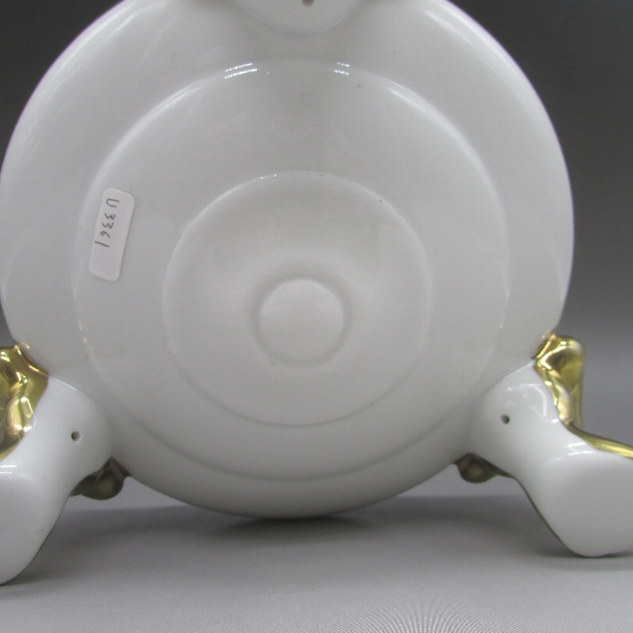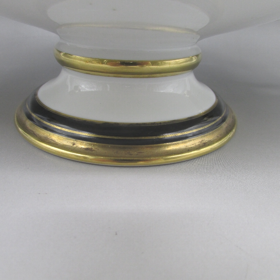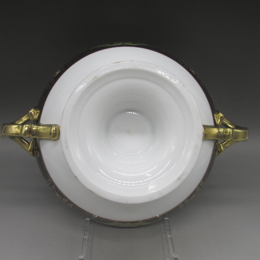 オールドノリタケの夕焼湖畔風景文パンチボウルです。1911年頃~1941年頃にイギリスに輸出され、約100年の時を経て日本に里帰りしてきました。海外のとある湖畔に白鳥を描いた風景がよく描かれています。周囲を金彩で豪華に仕上げたパンチボール(果物入れ)です。