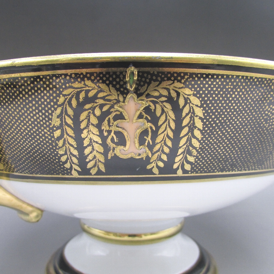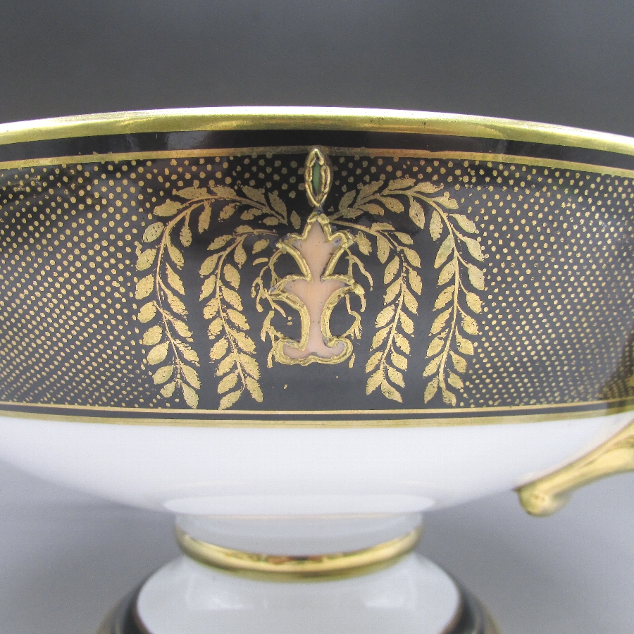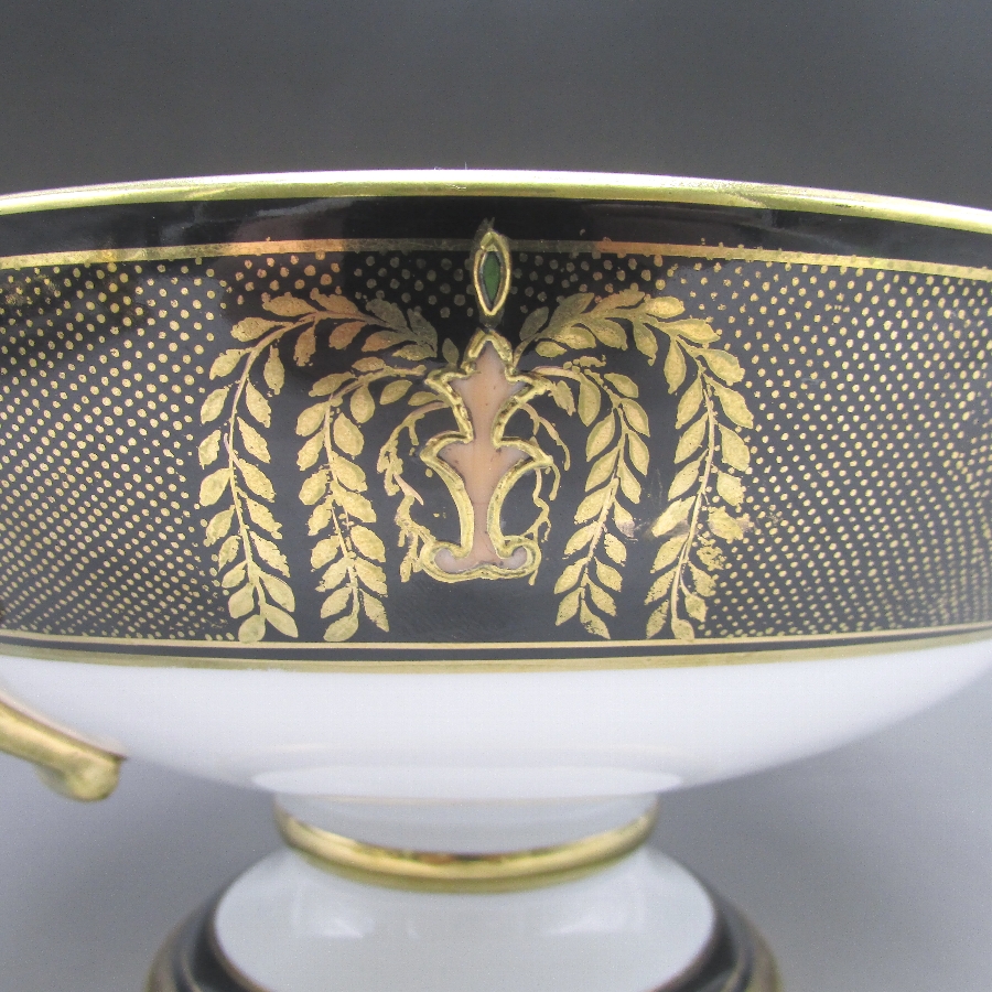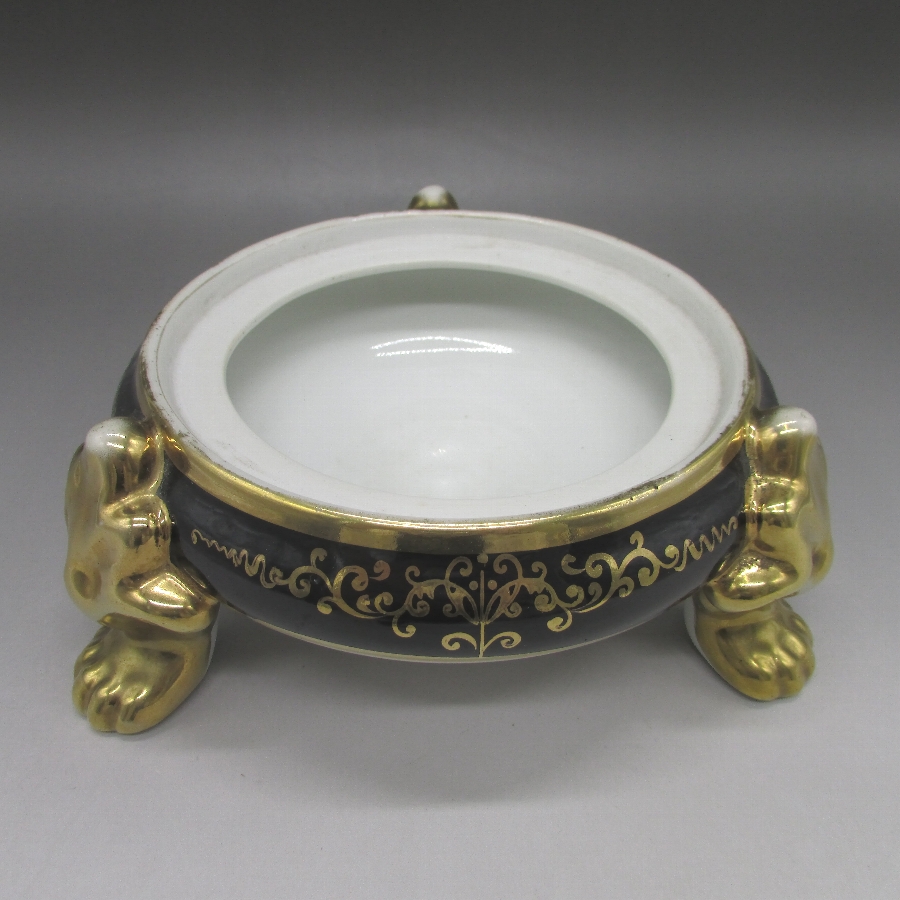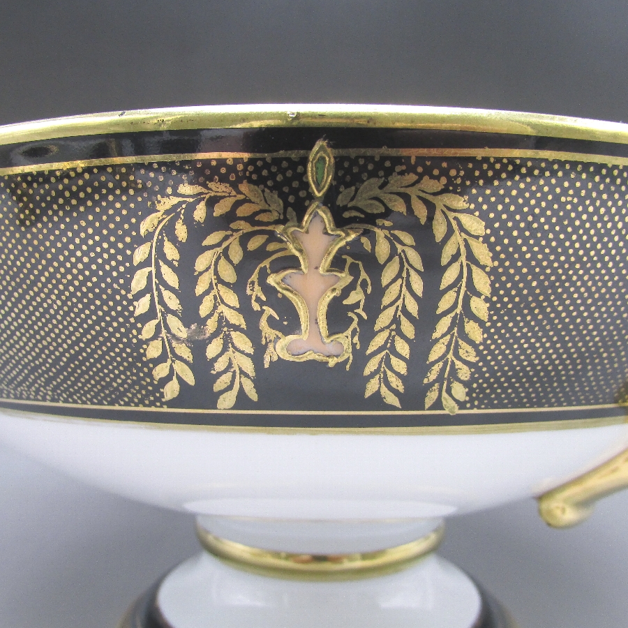 オールドノリタケの夕焼湖畔風景文パンチボウルです。1911年頃~1941年頃にイギリスに輸出され、約100年の時を経て日本に里帰りしてきました。海外のとある湖畔に白鳥を描いた風景がよく描かれています。周囲を金彩で豪華に仕上げたパンチボール(果物入れ)です。