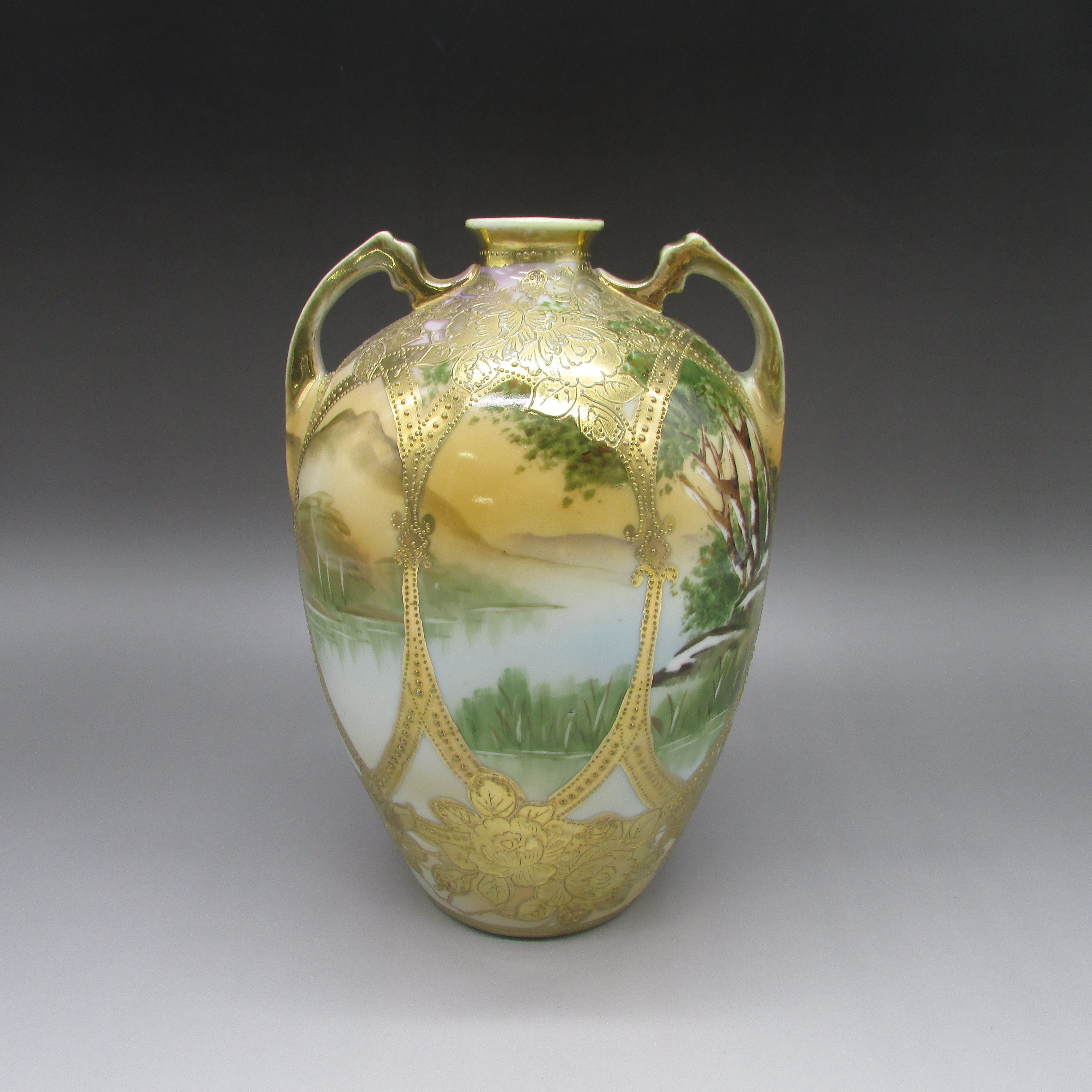 名称  オールドノリタケ 金盛湖畔風景文花瓶
