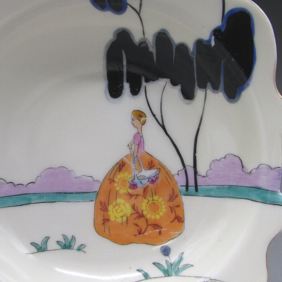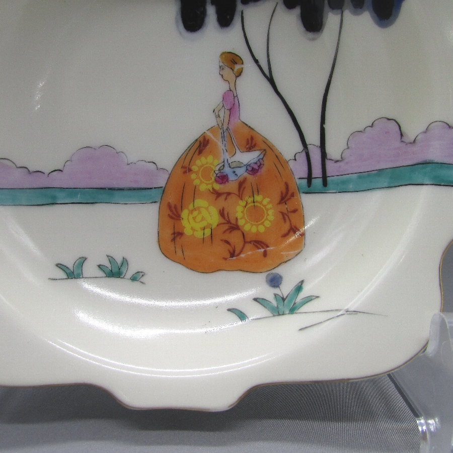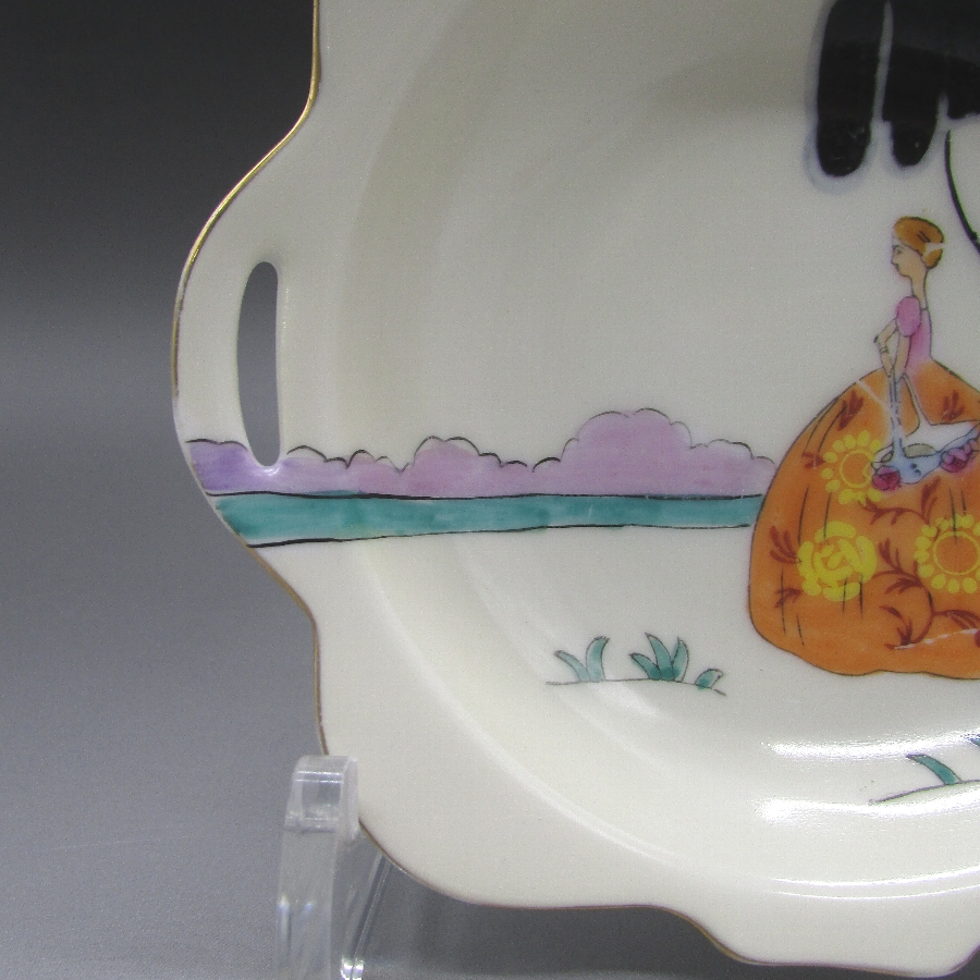 belle)は南北戦争前の米国南部での上流階級の女性像を指しています。その中でも特に、ケンタッキー州のサリー・ワードがサザン・ベルの代表的な存在として人気があります。アールデコ期の作品の中でも人気で、コレクターズアイテムとして確立されています。アールデコとは1925年にフランスのパリで開催された現代装飾産業美術国際博覧会によって呼ばれるようになった装飾様式です。東洋美術などの芸術的要素を取り入れた直線と立体のシンプルかつ合理的な機能美あるデザインで、明るく・鮮やかな色彩が特徴的です。ノリタケのアール・デコのデザインは、1919年に英国人デザイナーの「シリル・シー」が入社してから本格的に始まりました。ノリタケ・アール・デコの制作は、1920年頃から1929年の世界恐慌までのわずか10年間程度の制作期間しかなく、未だにその全貌は明らかにされていません。
