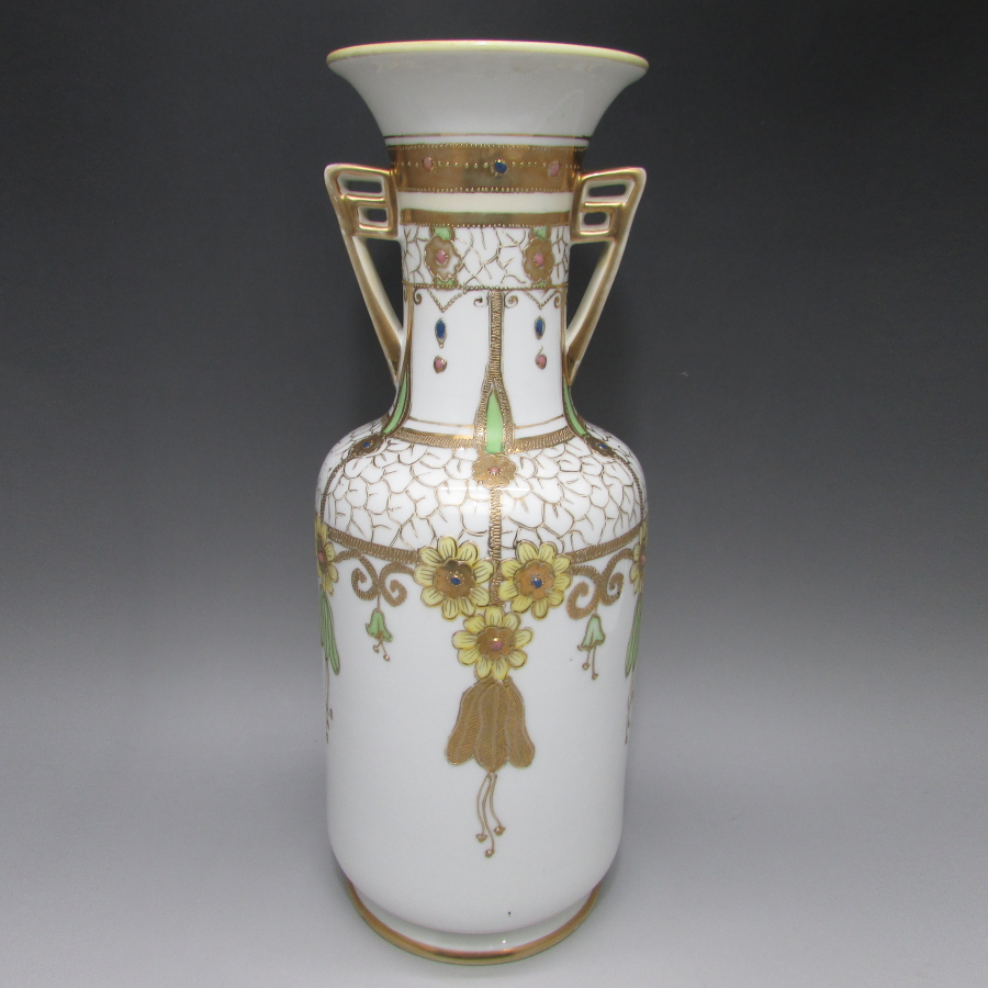 オールドノリタケの金彩ジュール黄花文花瓶です。1911年頃~1921年頃にアメリカに輸出され、約100年の時を経て日本に里帰りしてきました。