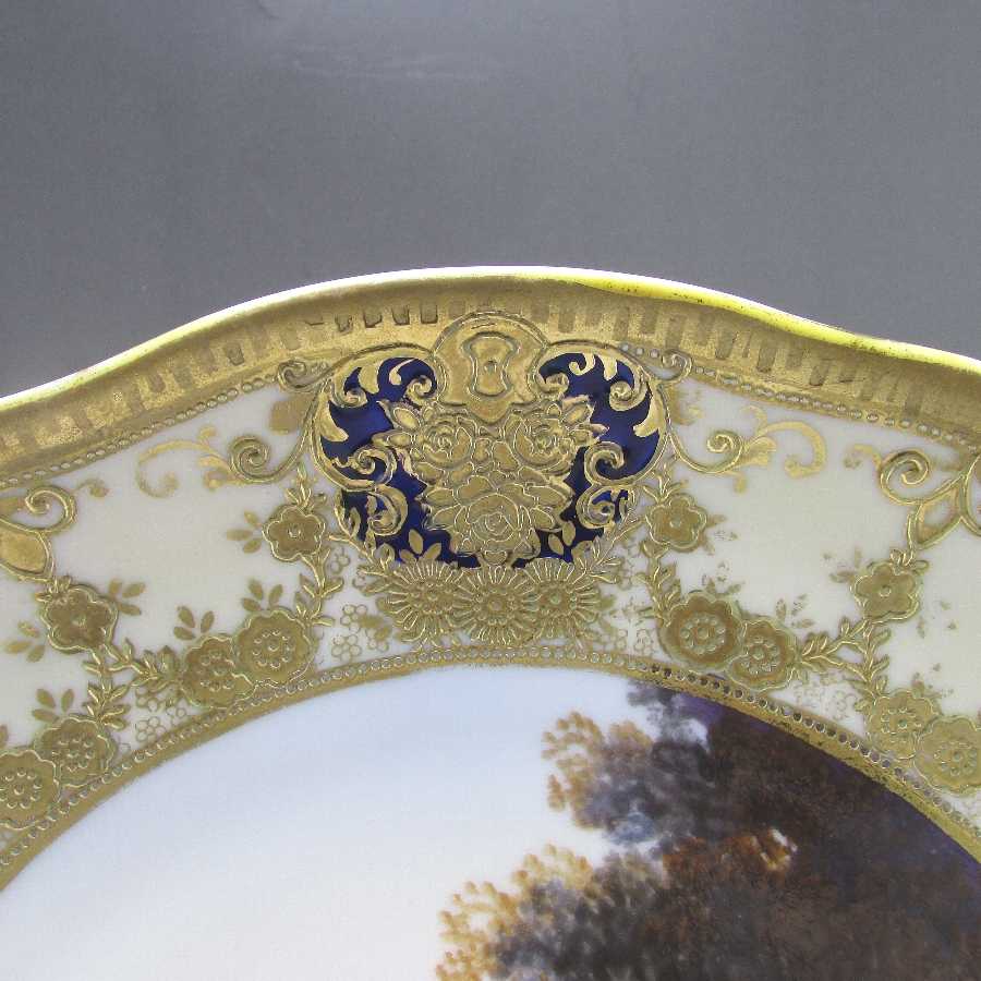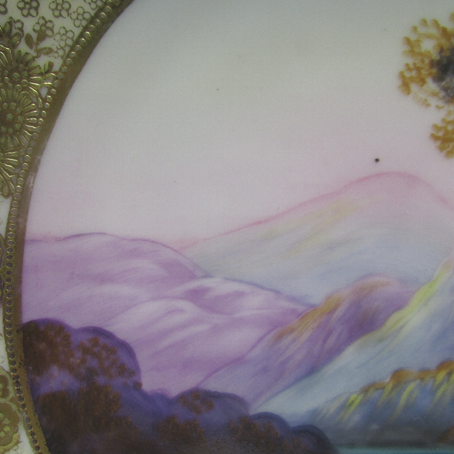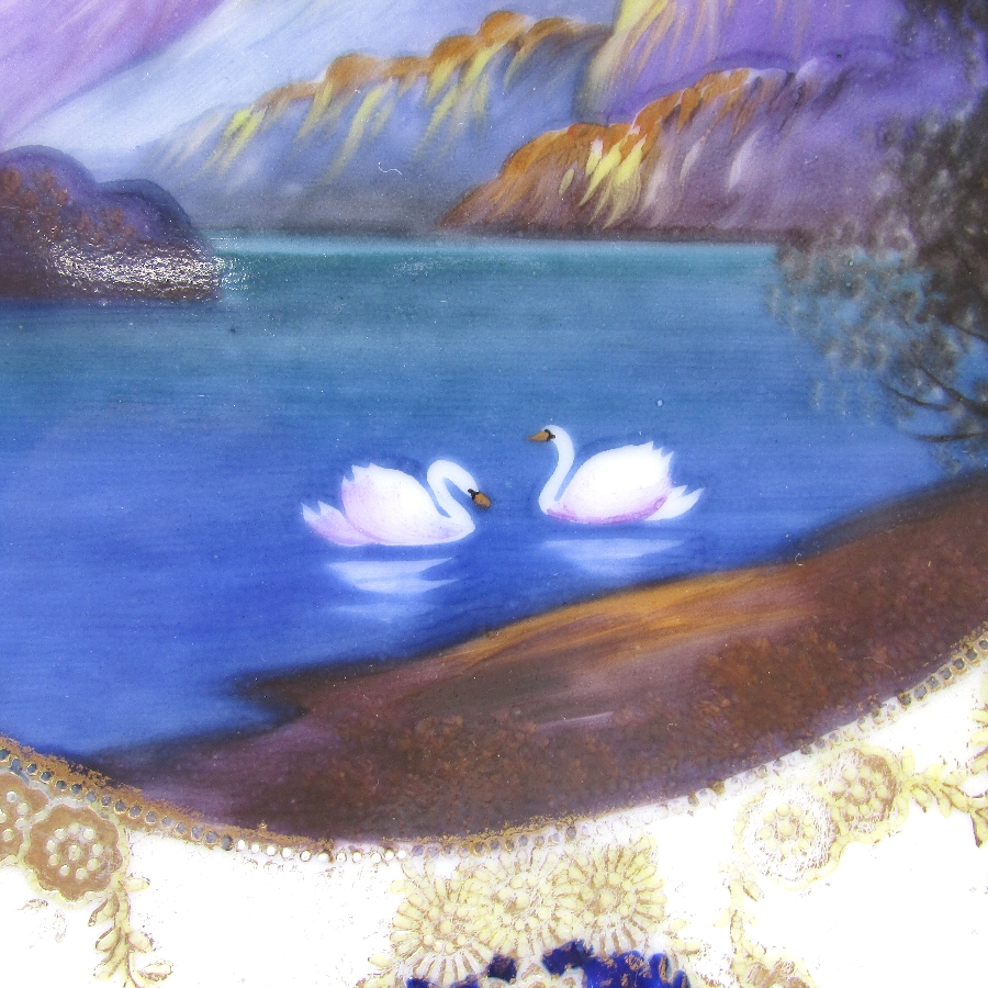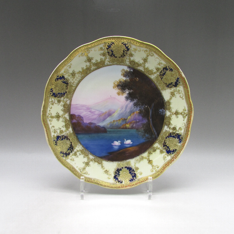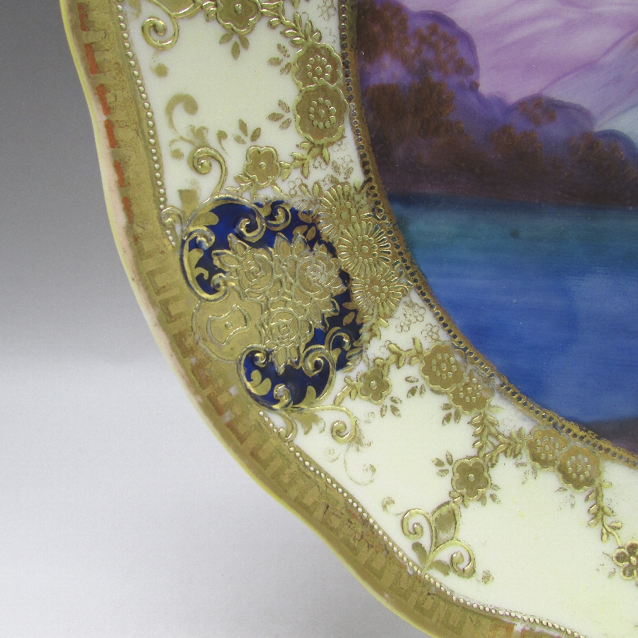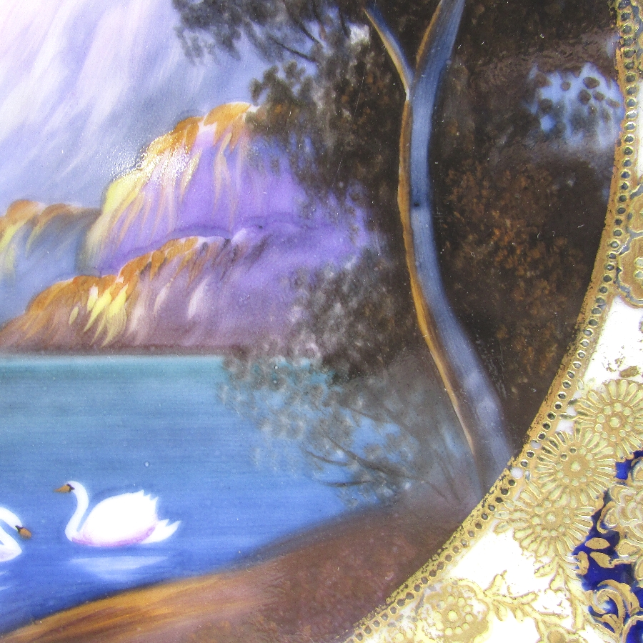 - 名称 オールドノリタケ 金盛夕焼湖畔白鳥風景文飾皿