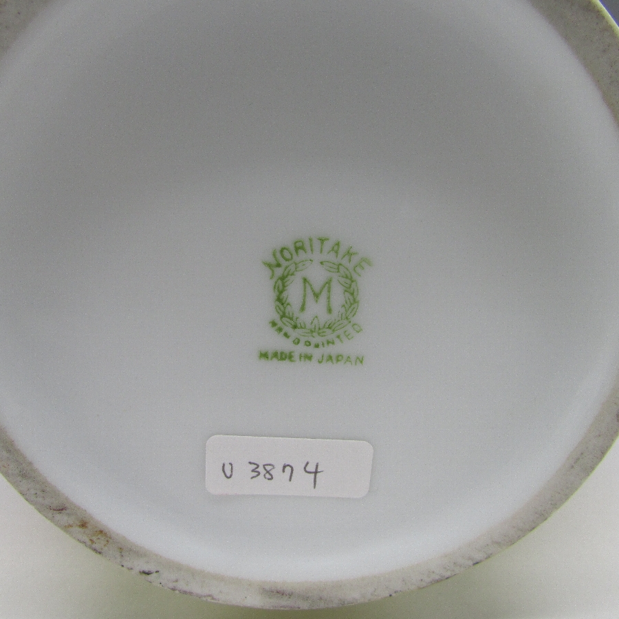 オールドノリタケの夕焼風景文花瓶です。1921年頃~1941年頃にアメリカに輸出され、約100年の時を経て日本に里帰りしてきました。アールデコ期に作陶された落ち着いた雰囲気の風景を描いた作品です。アールデコは1925年にフランスのパリで開催された現代装飾産業美術国際博覧会によって呼ばれるようになった装飾様式です。東洋美術などの芸術的要素を取り入れた直線と立体のシンプルかつ合理的な機能美あるデザインで、明るく・鮮やかな色彩が特徴的です。ノリタケのアール・デコのデザインは1919年に英国人デザイナーの「シリル・シー」が入社してから本格的に始まりました。ノリタケ・アール・デコの制作は1920年頃から1929年の世界恐慌までのわずか10年間程度の制作期間しかなく、未だにその全貌は明らかにされていません。