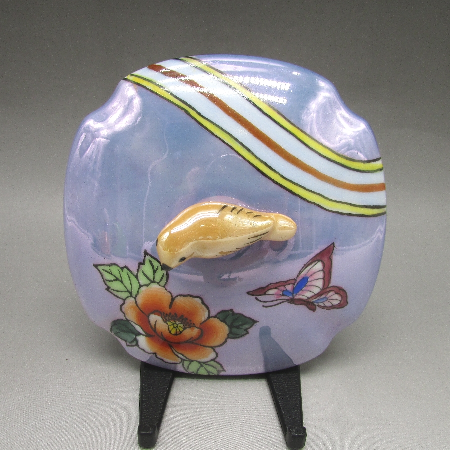 オールドノリタケの小鳥フィギュア付ジュエリーボックスです。1921年頃~1941年頃にアメリカに輸出され、約100年の時を経て日本に里帰りしてきました。フィギュア付きのアイテムはオールドノリタケのコレクターの間でとても人気があります。その中でも特に人気の高いものが鳥のフィギュアが付いたもので、「フィギュラルバード(FIGURAL