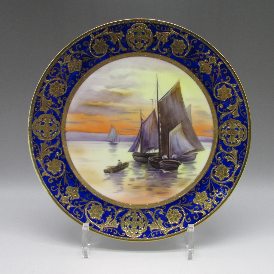 オールドノリタケ 金盛コバルト夕焼帆船風景文プレート