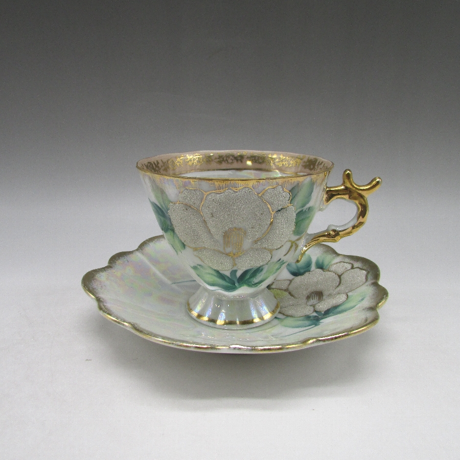 オールド・ジャパンが海外向けに作陶したコラレン装飾を施した花文カップ&ソーサーです。