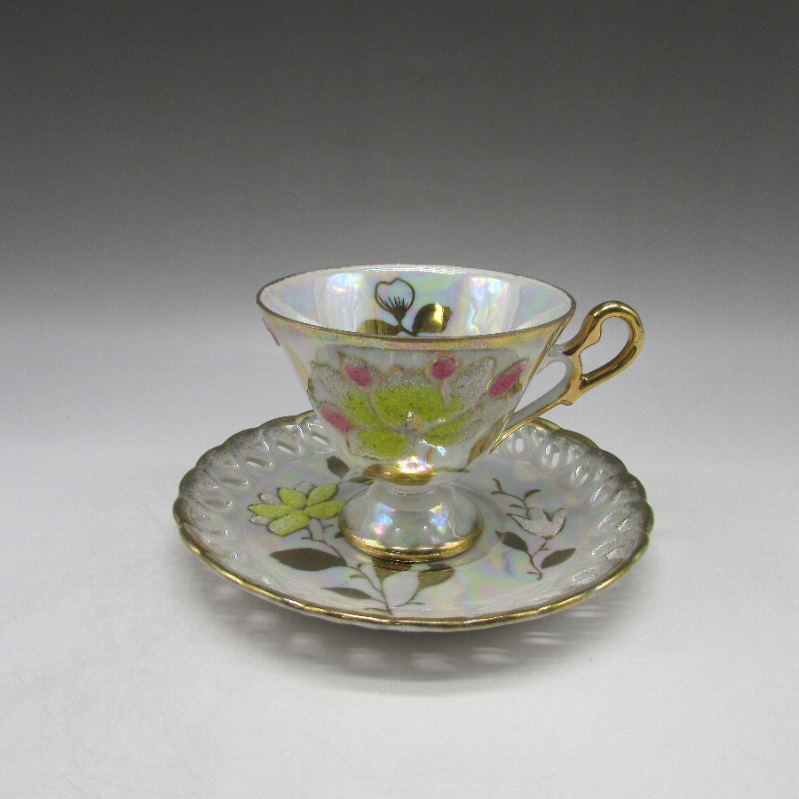オールド・ジャパンが海外向けに作陶したコラレン装飾を施した花文カップ&ソーサーです。
