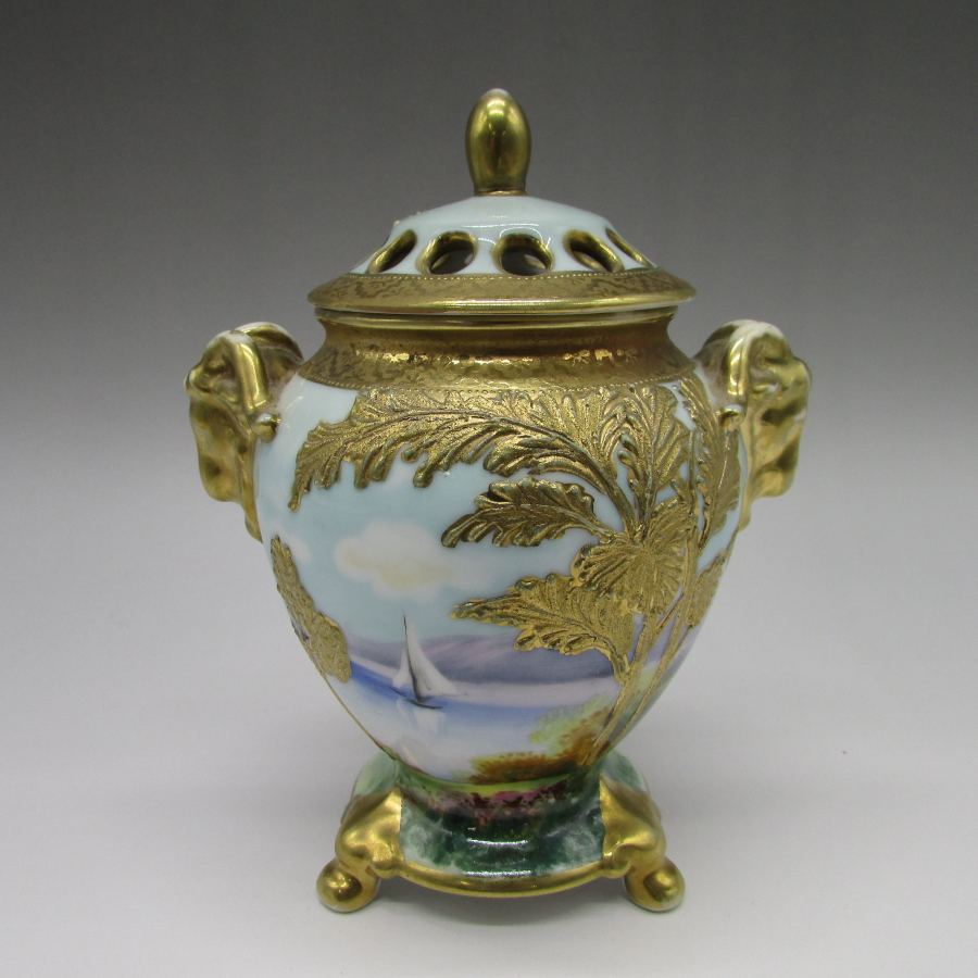 オールドノリタケ 金盛湖畔風景文ポプリポット