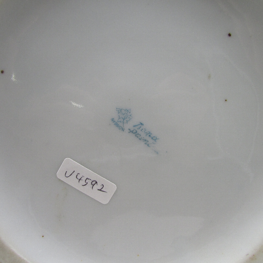BOOKS)に同作品が掲載されています。コバルト地に薔薇を描き、周囲を金盛り装飾で豪華絢爛な仕上がりにした作品です。コバルト(瑠璃地)は一般的に青色顔料としてはコバルト化合物を使用しますが、オールドノリタケでは鮮やかな瑠璃色を出すために酸化コバルトを使用していました。ノリタケのコバルトが素晴らしいのは、王宮の大きな庇護の下で品質を追求した官窯の仏セーブルに対して、民窯として経営と利益を考えた上でこの品質が出来上がる点です。