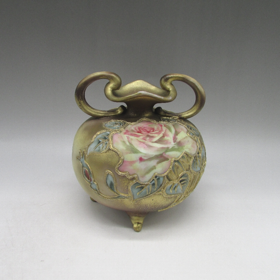 名称  オールドノリタケ 薔薇文把手付花瓶