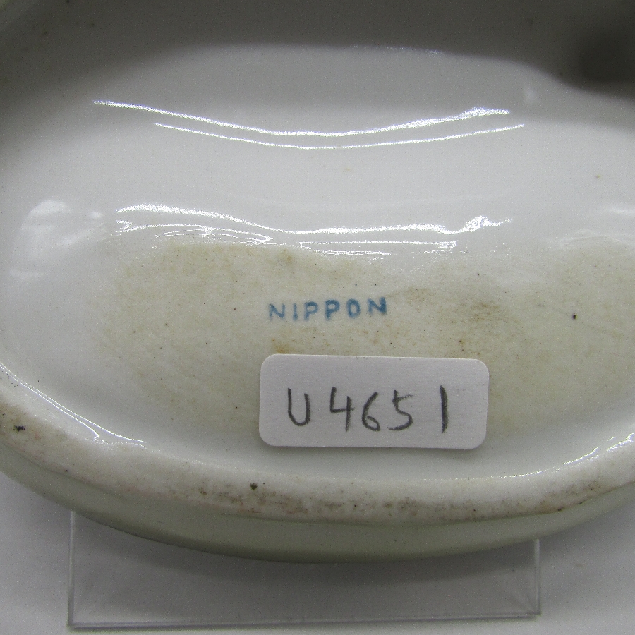 オールド・ニッポンの犬&蓄音機付皿(ST.JOHNSBURG.VT)です。明治・大正時代に欧米に輸出され、約100年の時を経て日本に里帰りしてきました。「VAN PATTEN’S ABC’s of COLLECTING NIPPON PORCELAIN identification and values」(Joan Van Patten/2005・COLLECTOR BOOKS)に同作品が掲載されています。