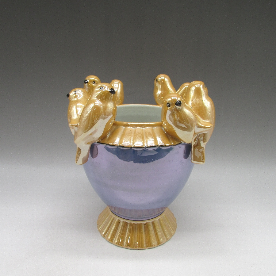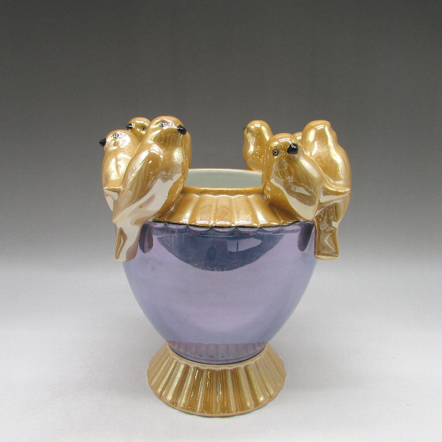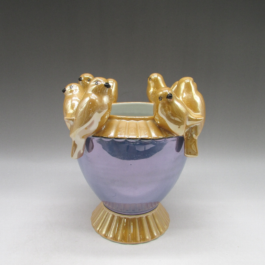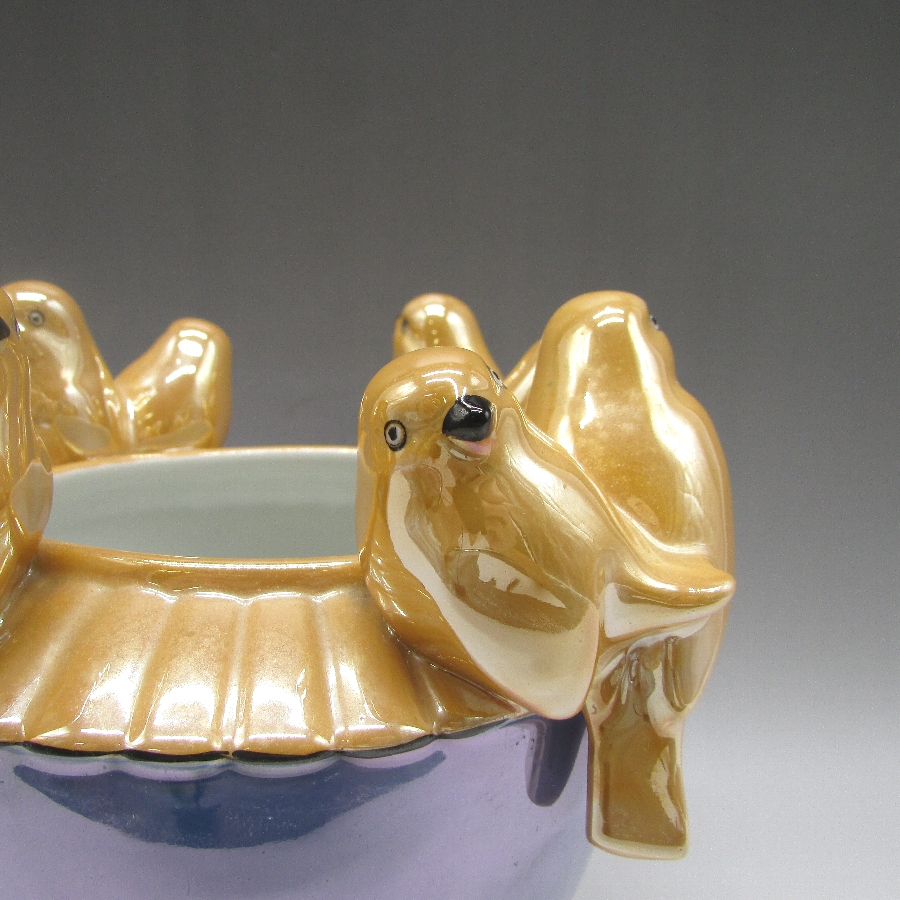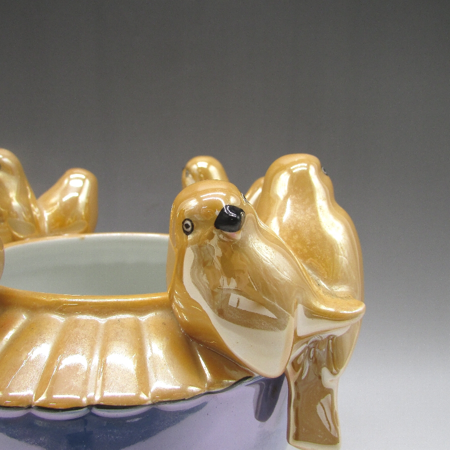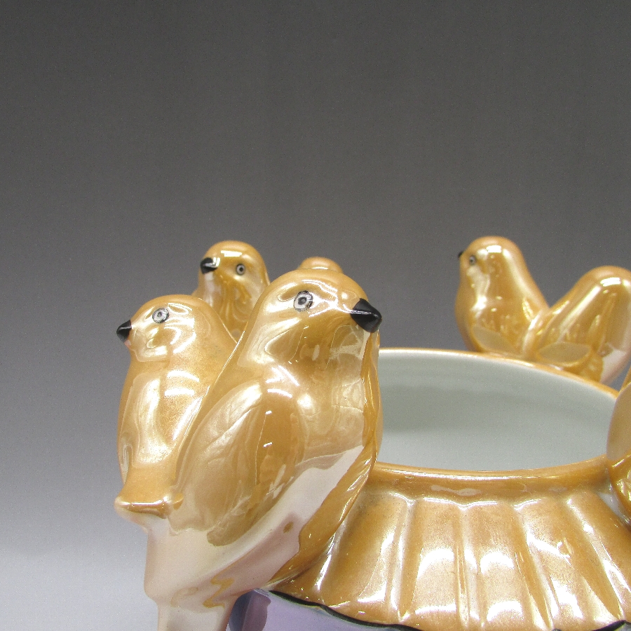 オールドノリタケの群鳥フィギュア付花瓶です。1921年頃~1941年頃にアメリカに輸出され、約100年の時を経て日本に里帰りしてきました。フィギュア付きのアイテムはオールドノリタケのコレクターの間でとても人気があります。その中でも特に人気の高いものが鳥のフィギュアが付いたもので、「フィギュラルバード(FIGURAL