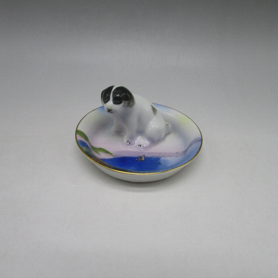 トップ > ラインナップ > オールドノリタケ一覧 Vol.008 > オールドノリタケ 犬フィギュア付ピンディッシュ