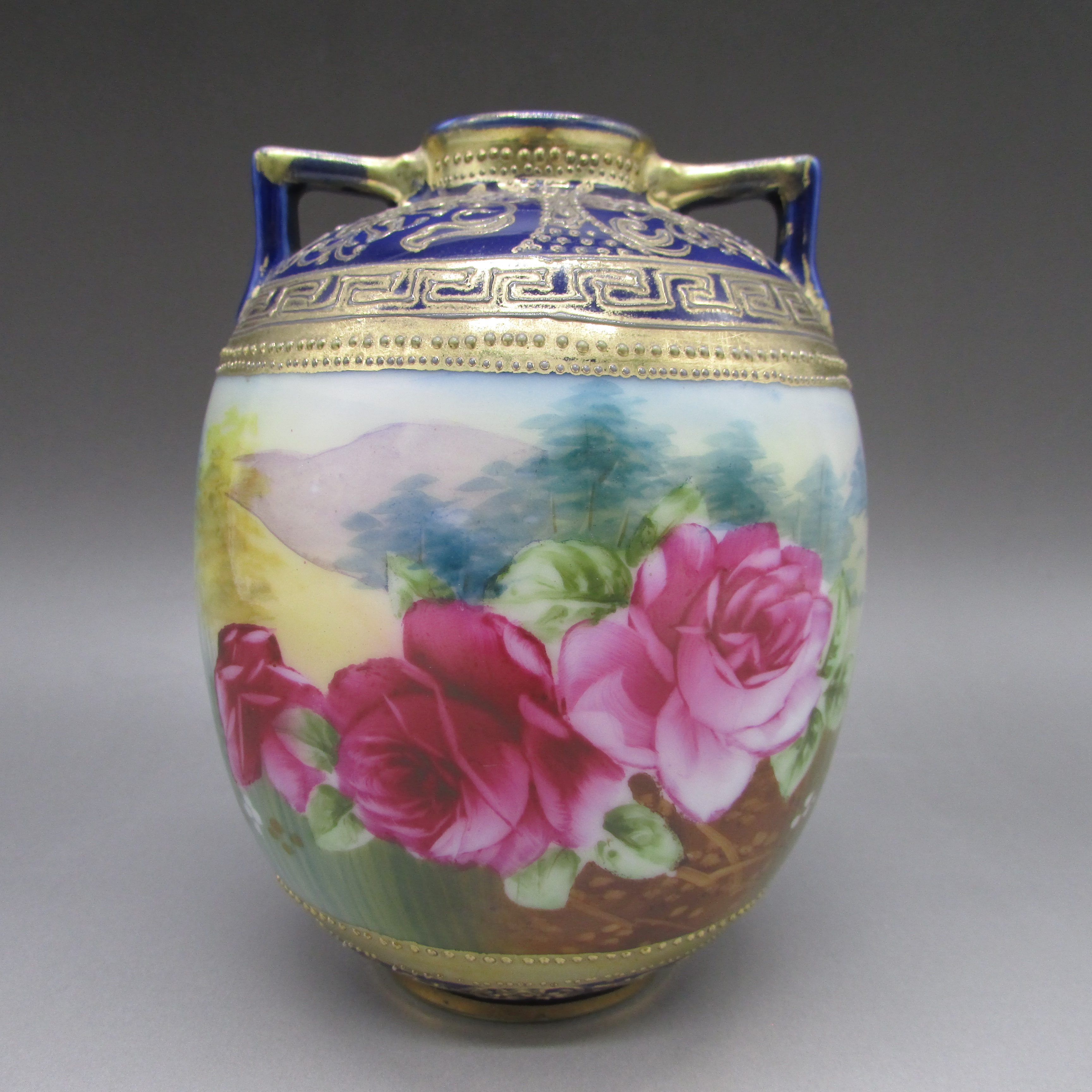 名称  オールドノリタケ コバルト金盛薔薇文花瓶