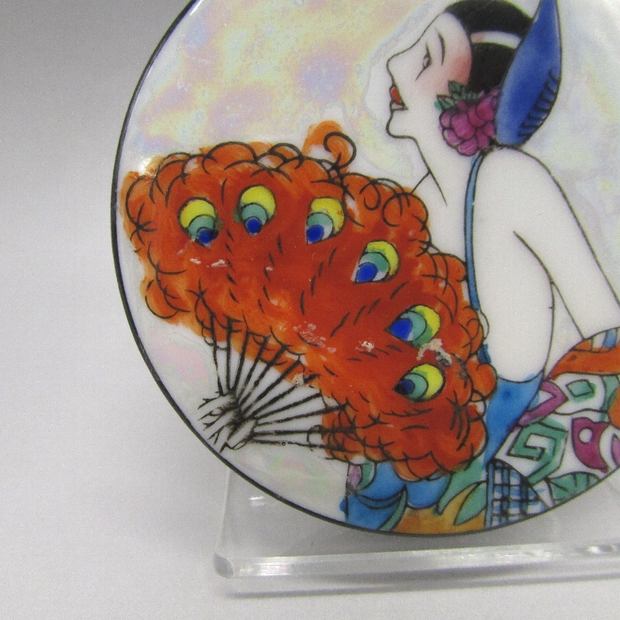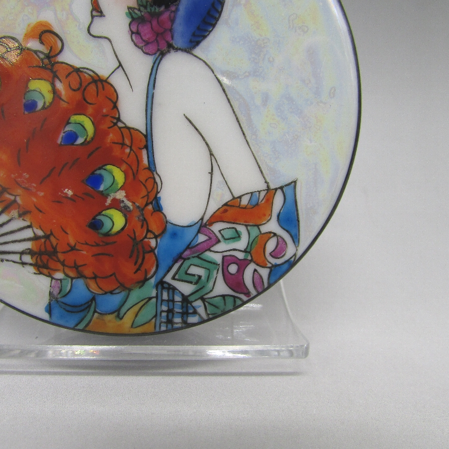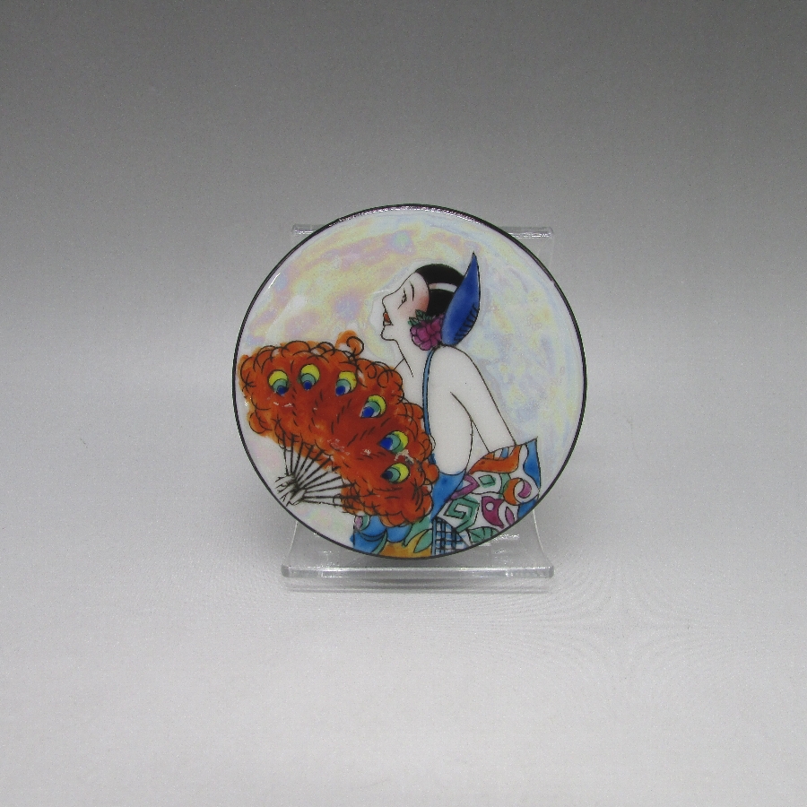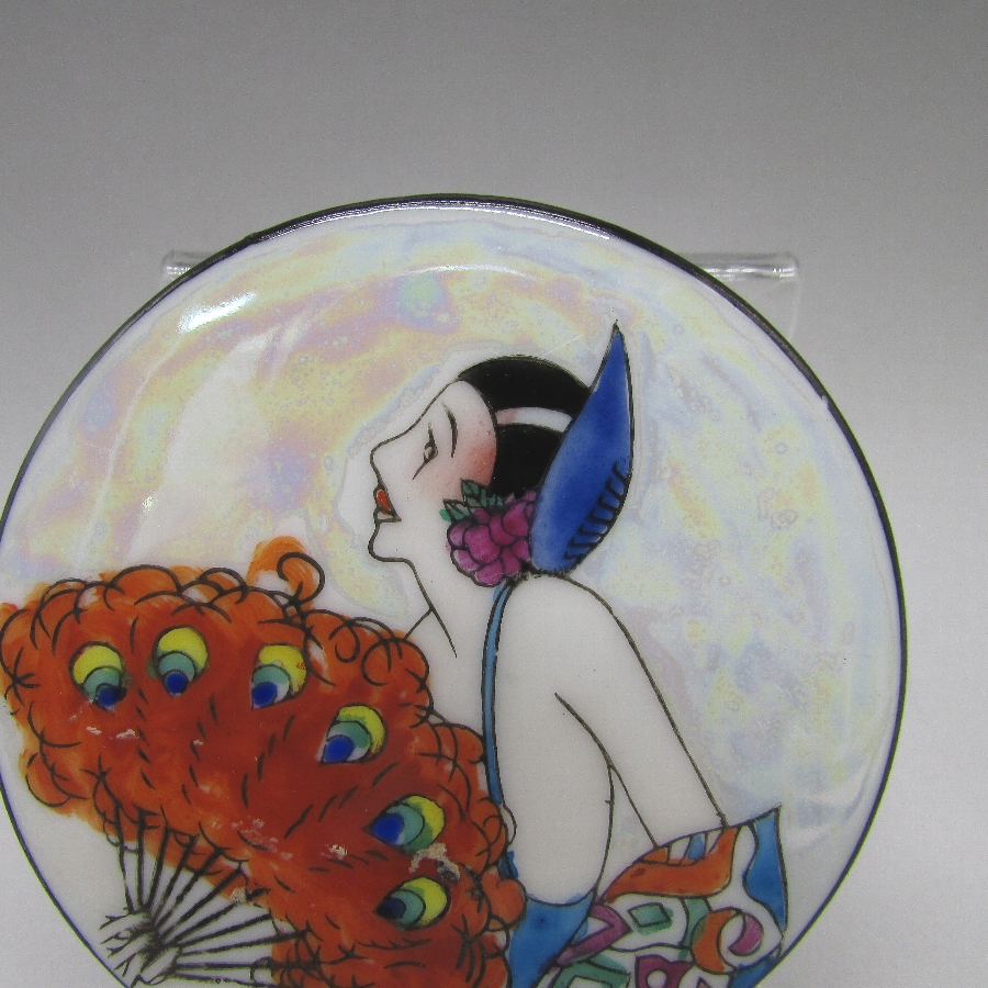 BOOKS)に同作品が掲載されています。デコレディはアールデコ期の作品の中でも特に人気の高いシリーズで、「愛らしく、明るい雰囲気」が特徴的です。ホーマー・コナント(1887年-1927年)の「マダム・ポンパドール」の絵を題材に製陶されたものやロシアの「エルテ」などのデザイナーがモティーフになった作品も実在しています。また、それ以外にも「ハーパス・バザール」や「ヴォーグ」といったファッション雑誌に登場する女性を参考にした作品も存在しています。アールデコとは1925年にフランスのパリで開催された現代装飾産業美術国際博覧会によって呼ばれるようになった装飾様式です。東洋美術などの芸術的要素を取り入れた直線と立体のシンプルかつ合理的な機能美あるデザインで、明るく・鮮やかな色彩が特徴的です。ノリタケのアール・デコのデザインは、1919年に英国人デザイナーの「シリル・シー」が入社してから本格的に始まりました。ノリタケ・アール・デコの制作は、1920年頃から1929年の世界恐慌までのわずか10年間程度の制作期間しかなく、未だにその全貌は明らかにされていません。