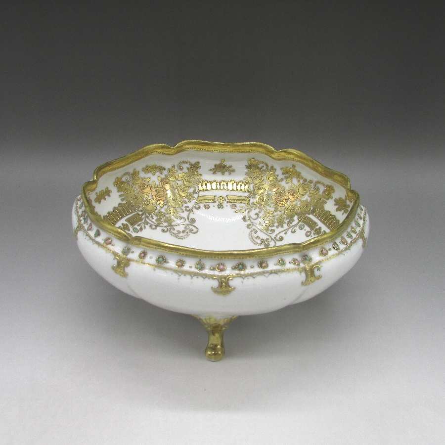 トップ > ラインナップ > オールドノリタケ一覧 Vol.008 > オールドノリタケ 金盛り唐草文三脚付ボウル