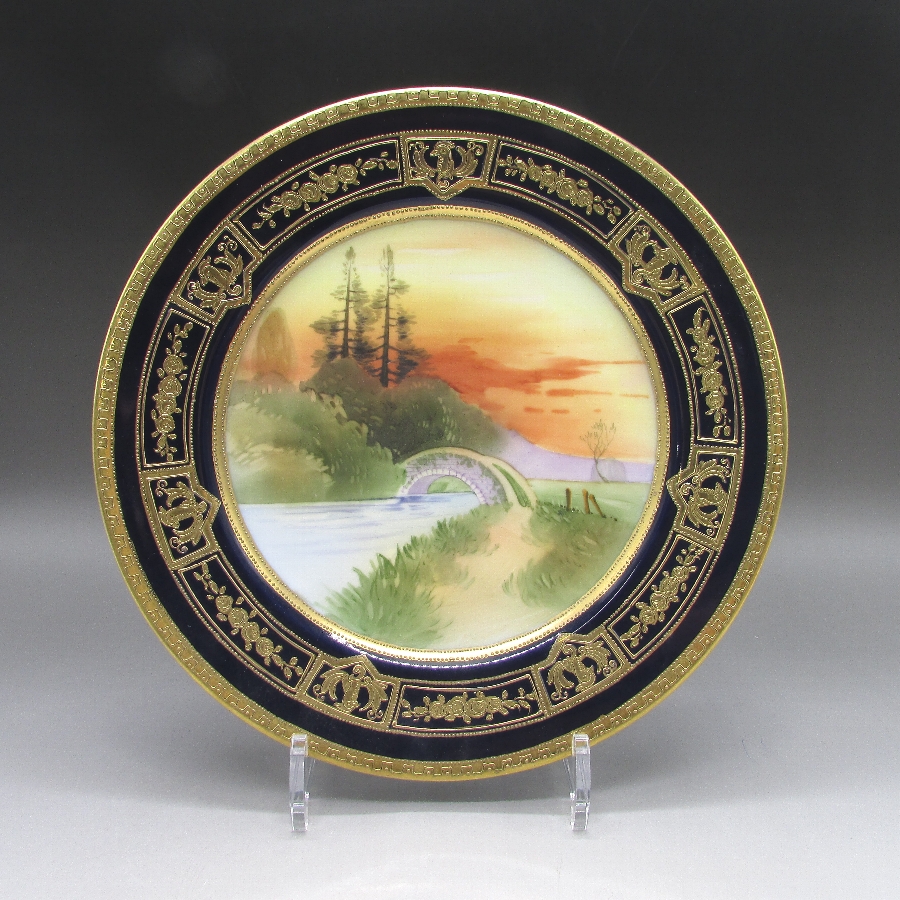 オールドノリタケのコバルト金盛り石橋風景文飾皿です。1911年頃~1921年頃にアメリカに輸出され、約100年の時を経て日本に里帰りしてきました。「The