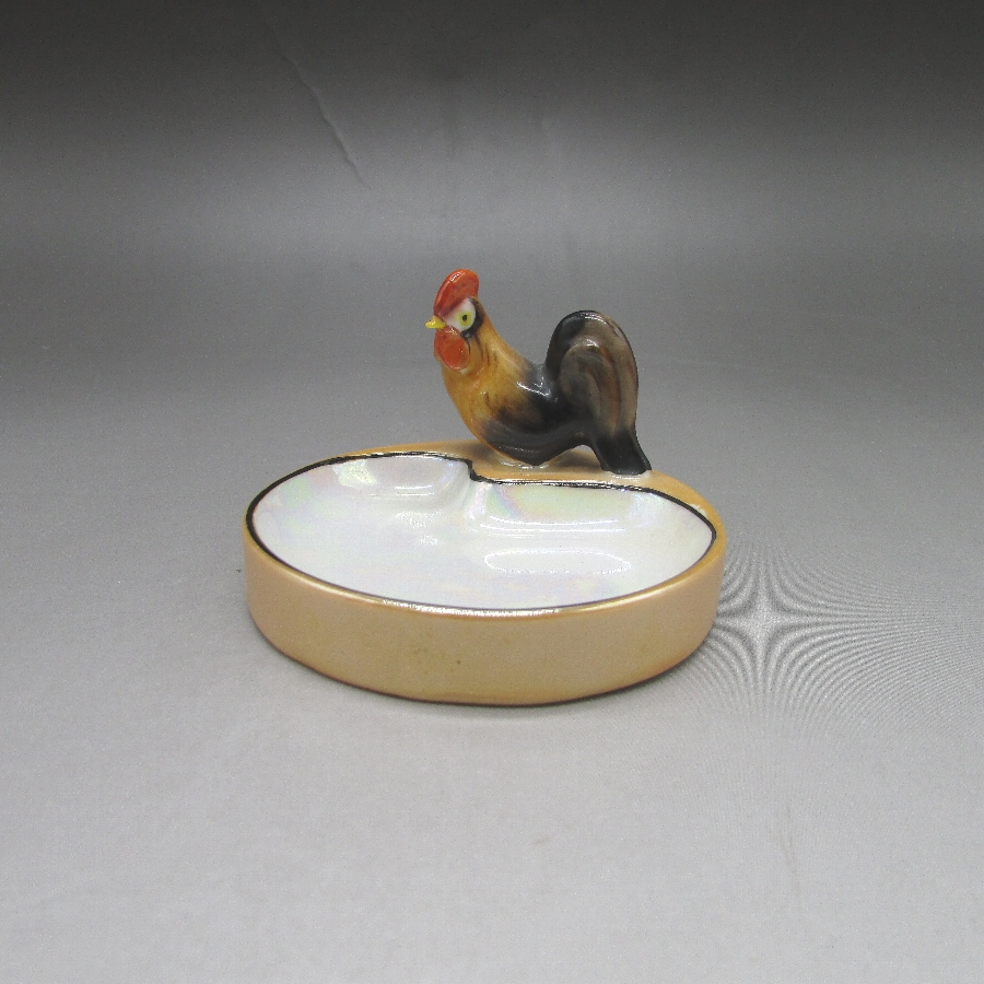 オールドノリタケ 鶏フィギュア付ピンディッシュ