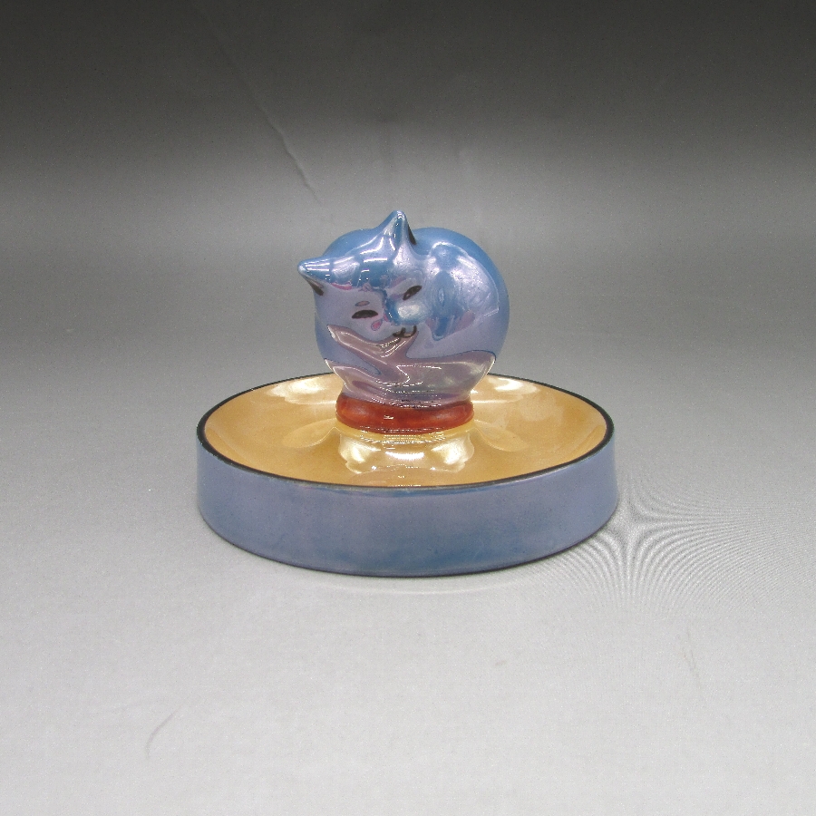 オールドノリタケ 猫フィギュア付ピンディッシュ