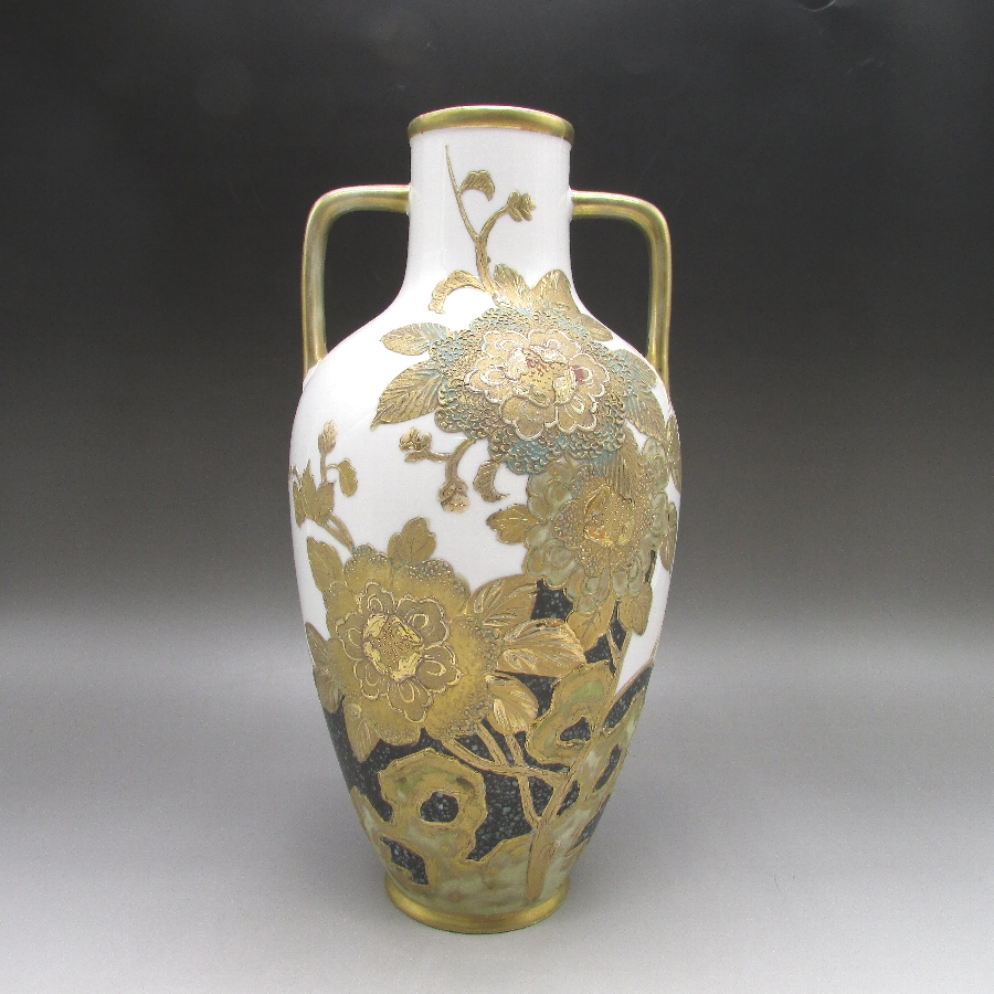 オールドノリタケのエッチング花文花瓶です。1911年頃~1921年頃にアメリカに輸出され、約100年の時を経て日本に里帰りしてきました。「オールド・ノリタケ名品集」(大賀弓子・若林経子編/2001・平凡社)、「ノリタケミュージアム