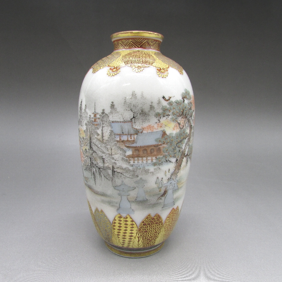 九谷焼・久谷が主に欧米諸国向けに作陶した風景文花瓶です。九谷焼は日本の伝統的美意識や技法を引き継いだやきもの になります。そんな九谷焼がアメリカから日本に里帰りしてきました。