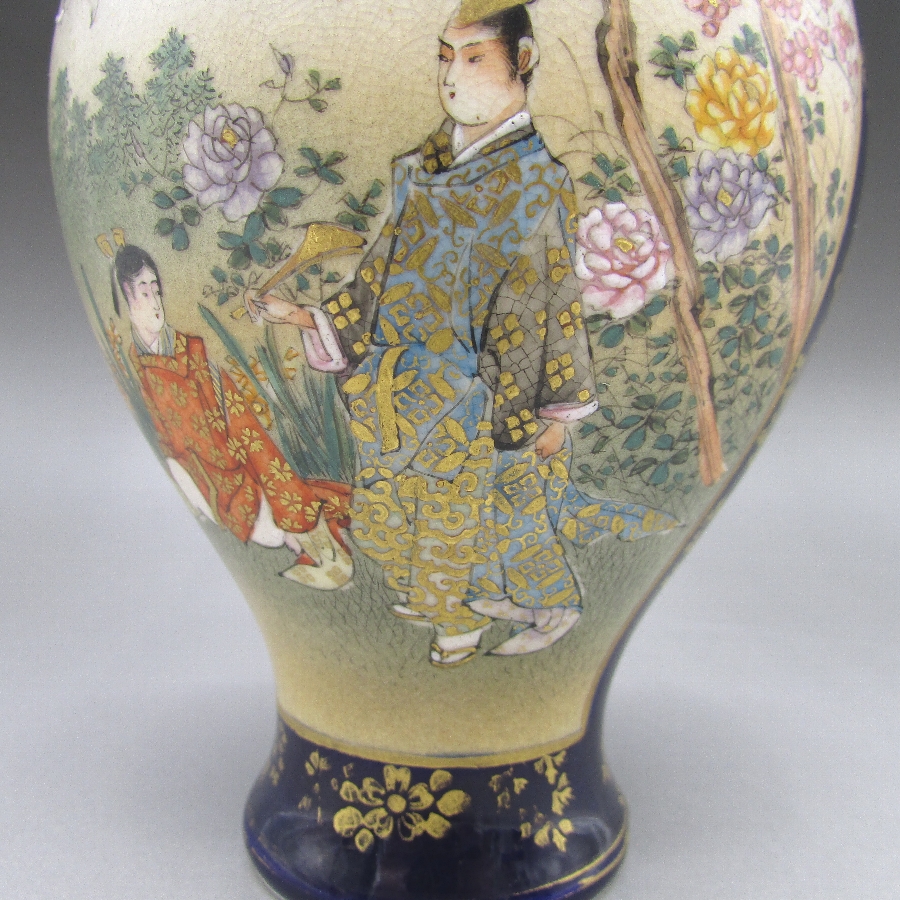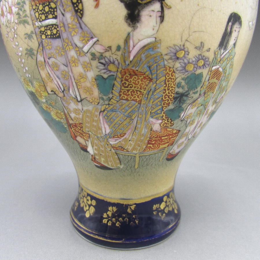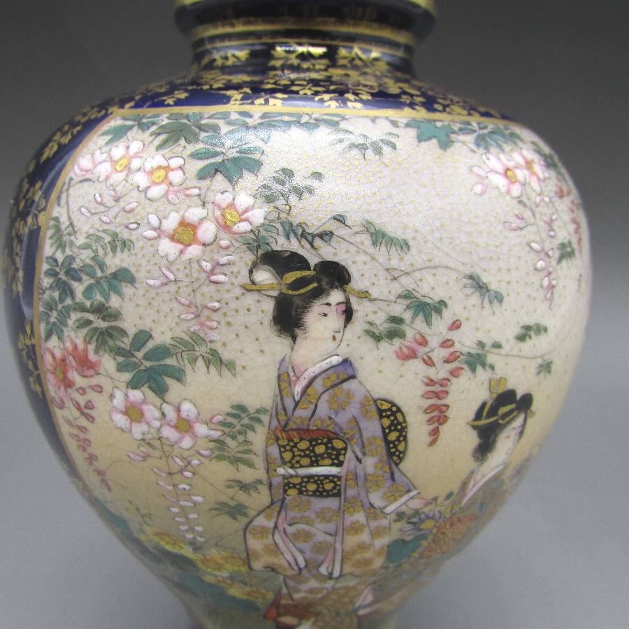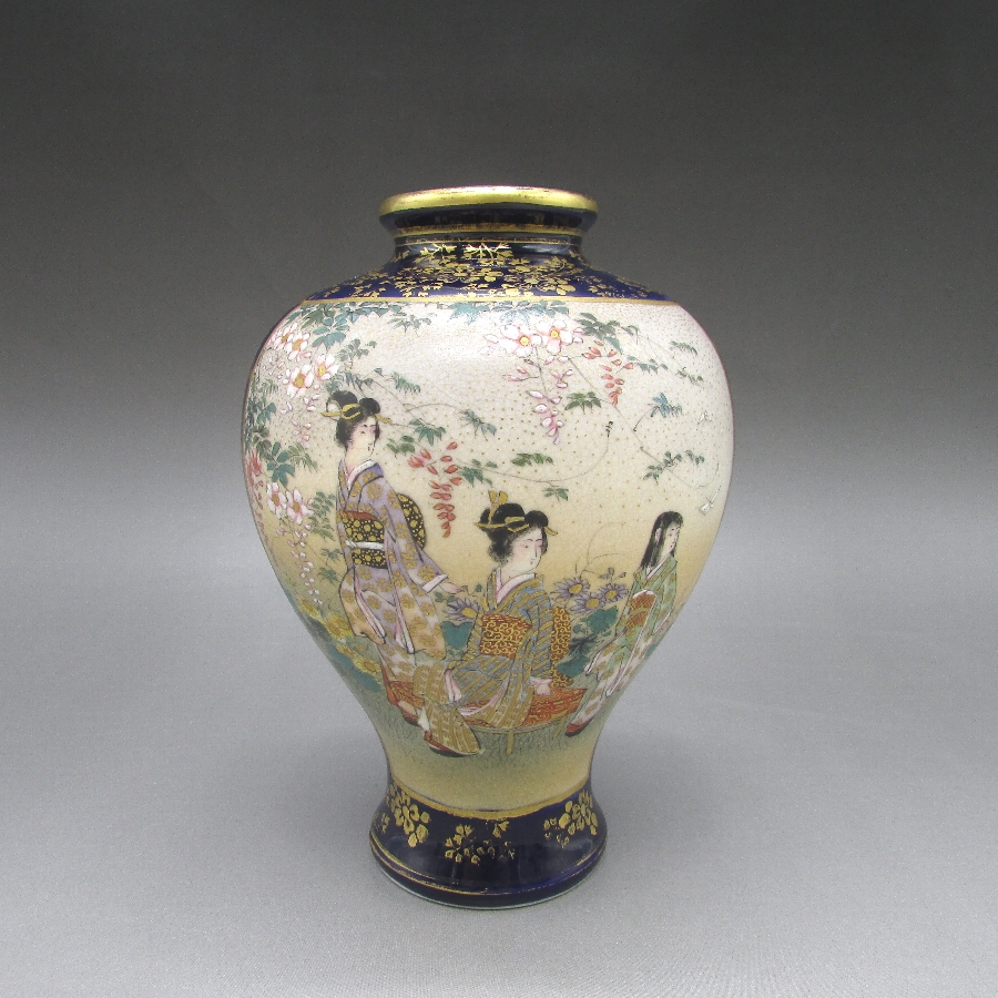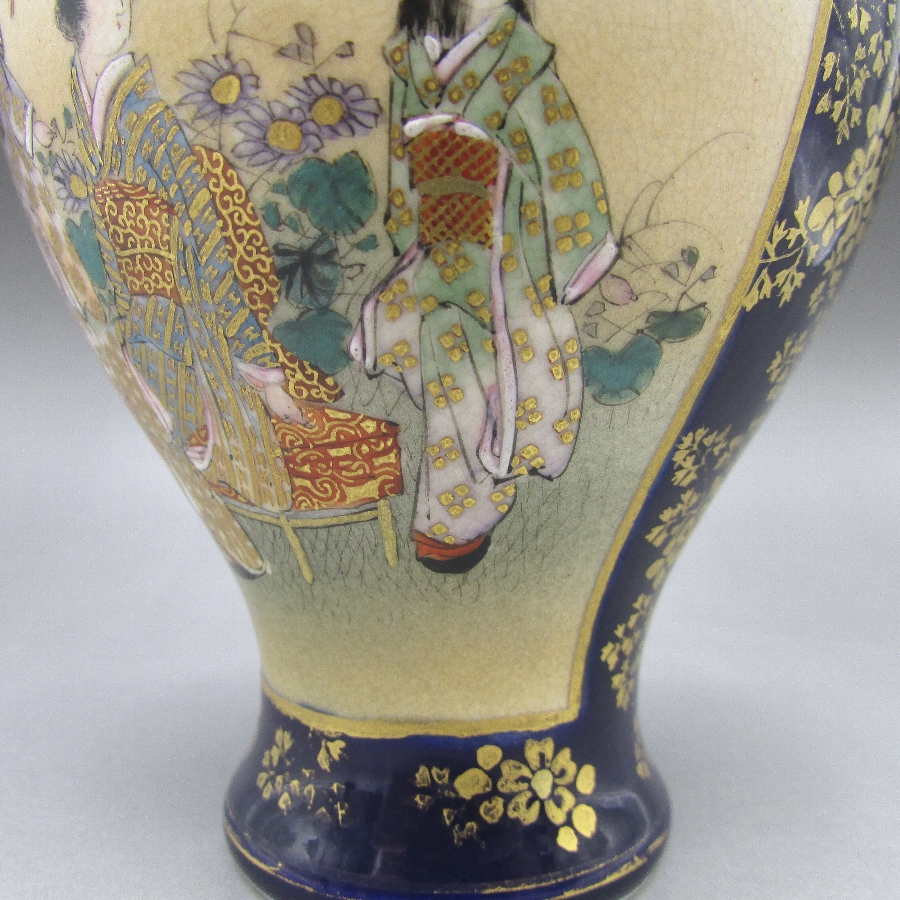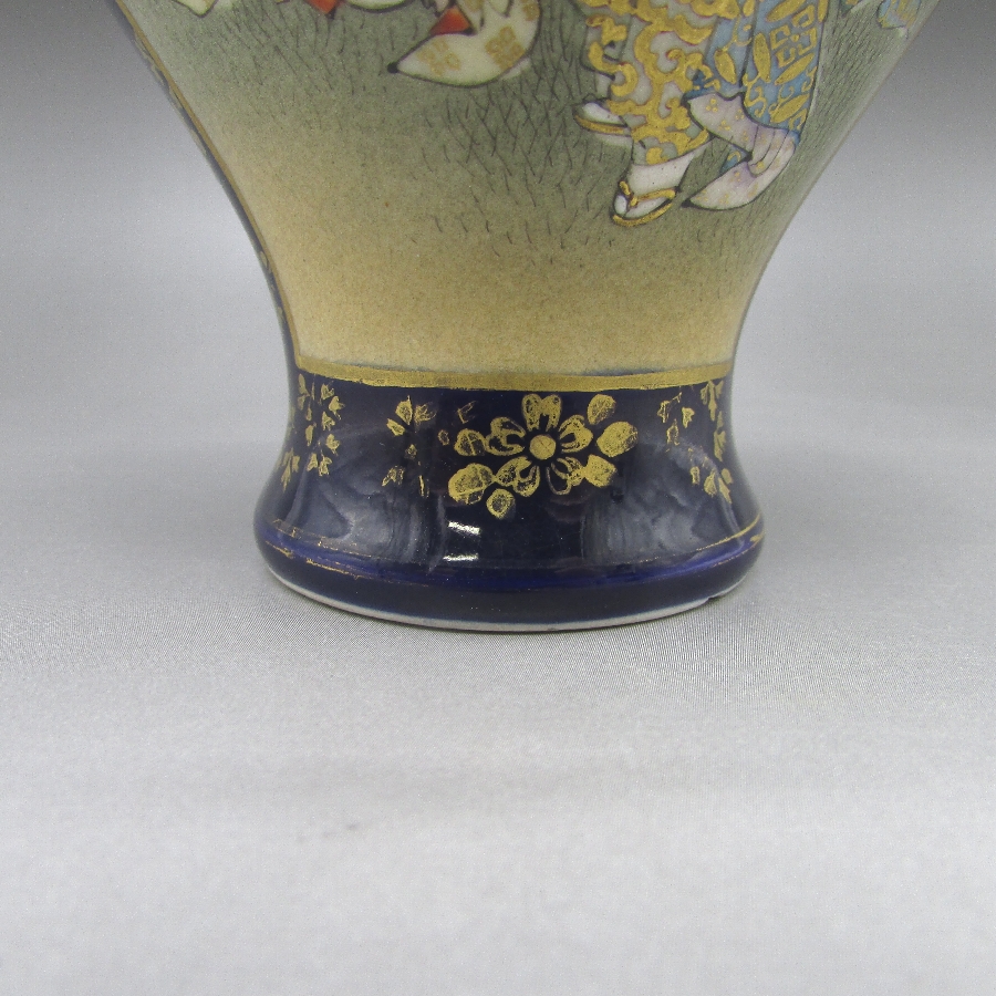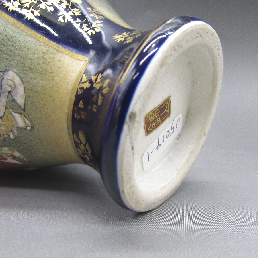 名称  薩摩焼 錦山 瑠璃地金襴手芸者文花瓶一対