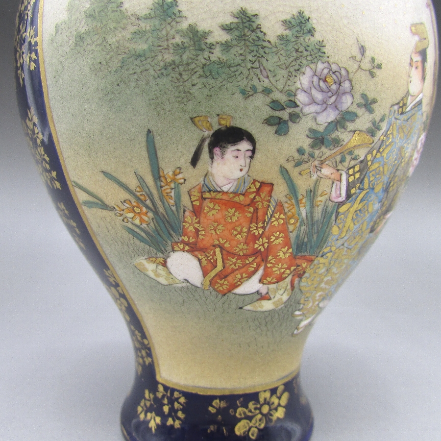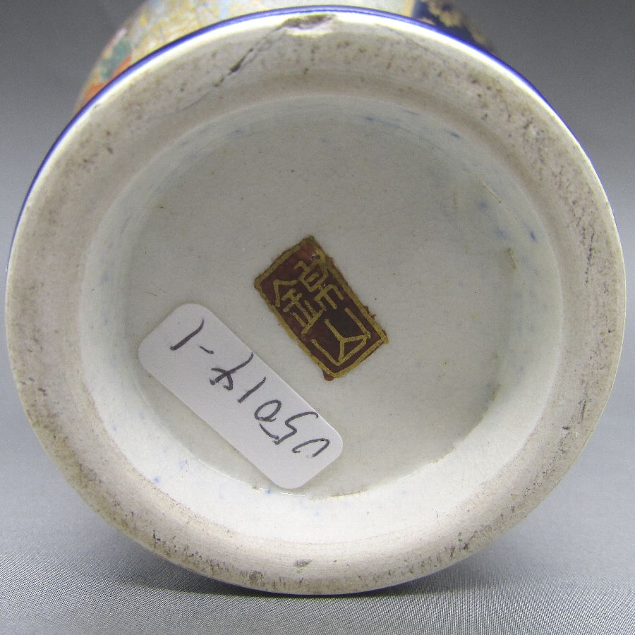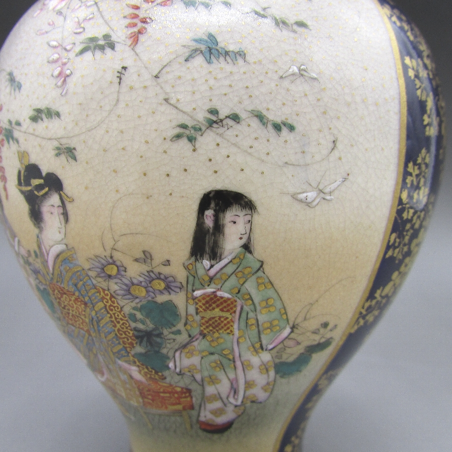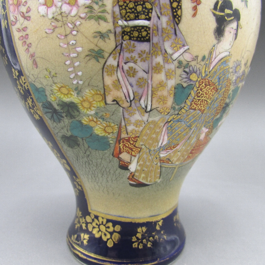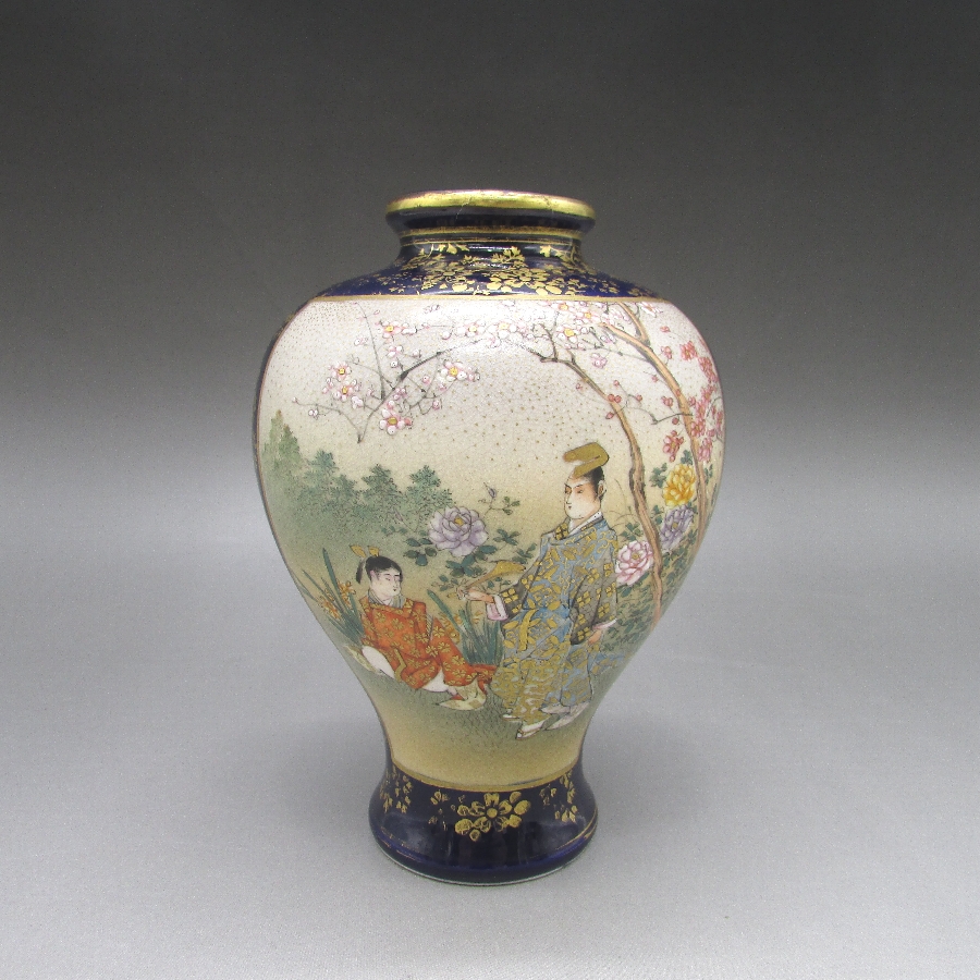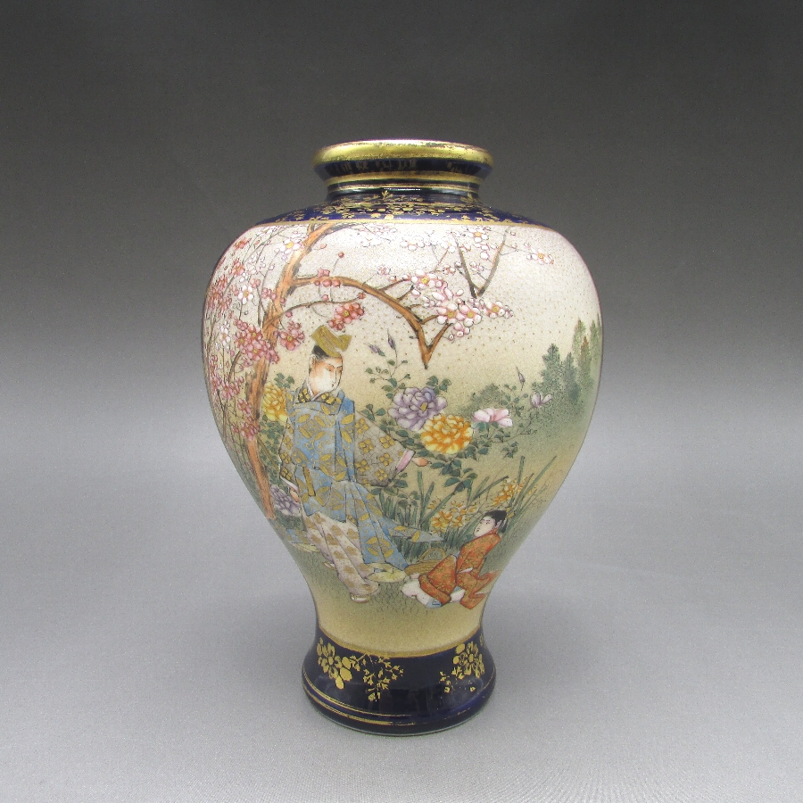 名称  薩摩焼 錦山 瑠璃地金襴手芸者文花瓶一対