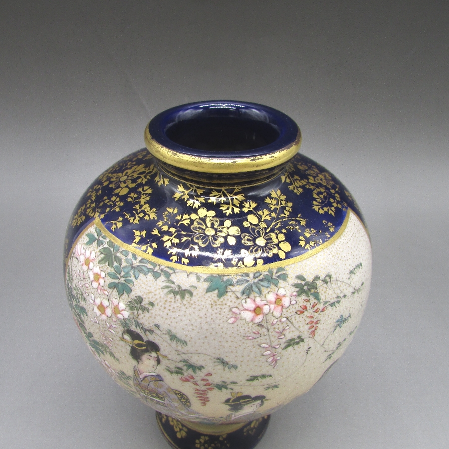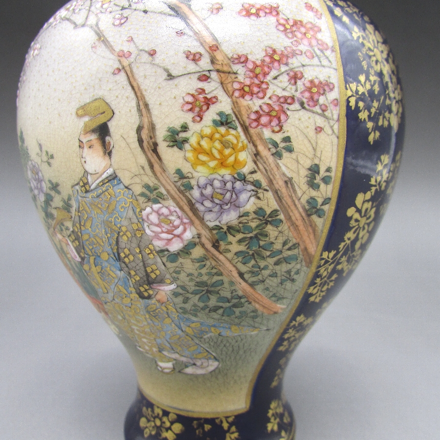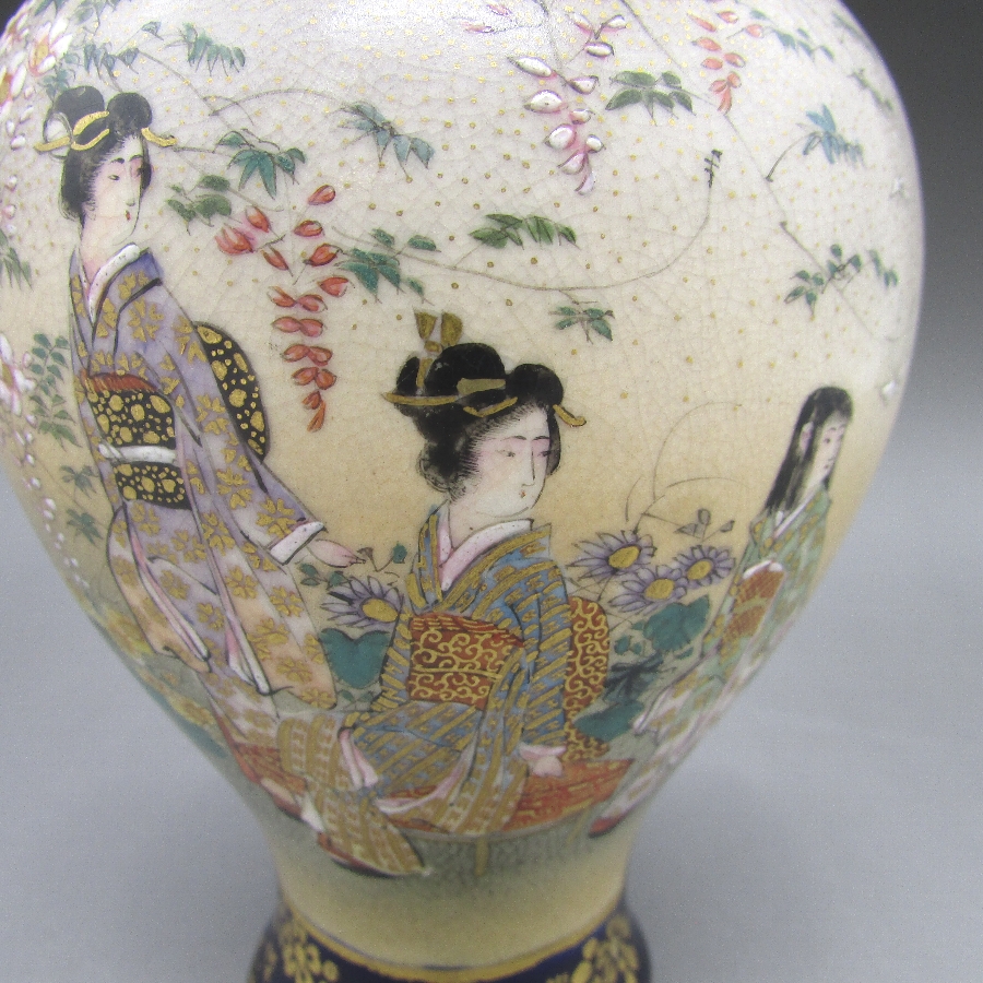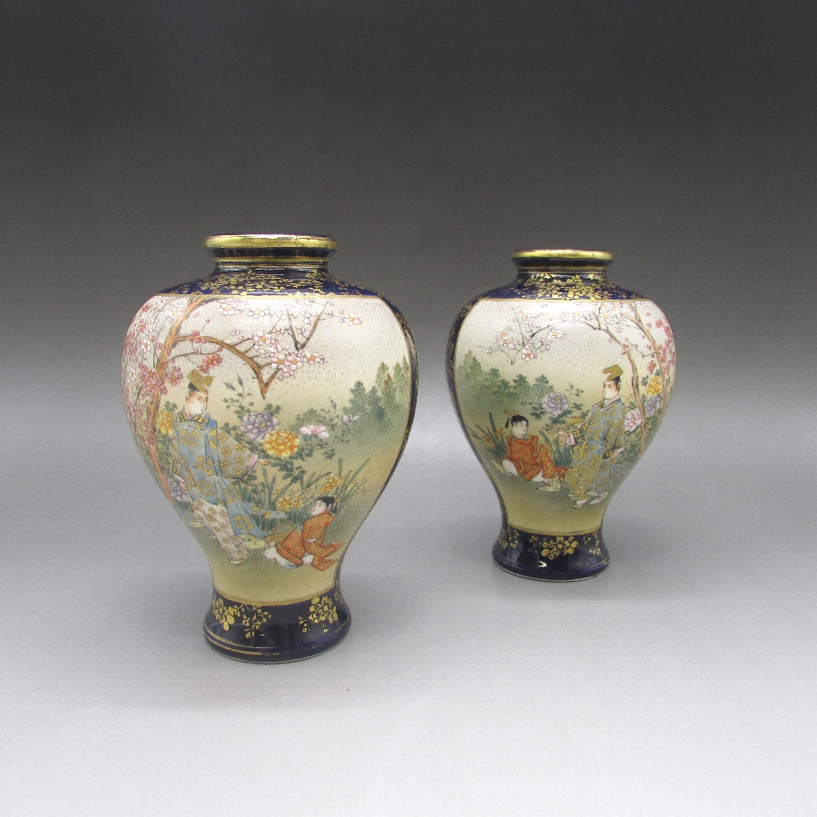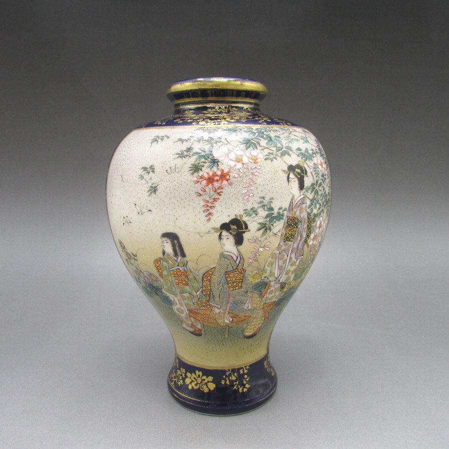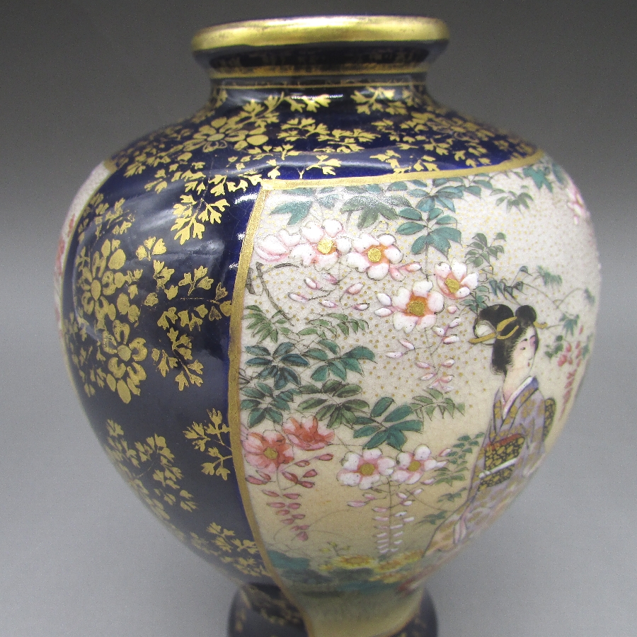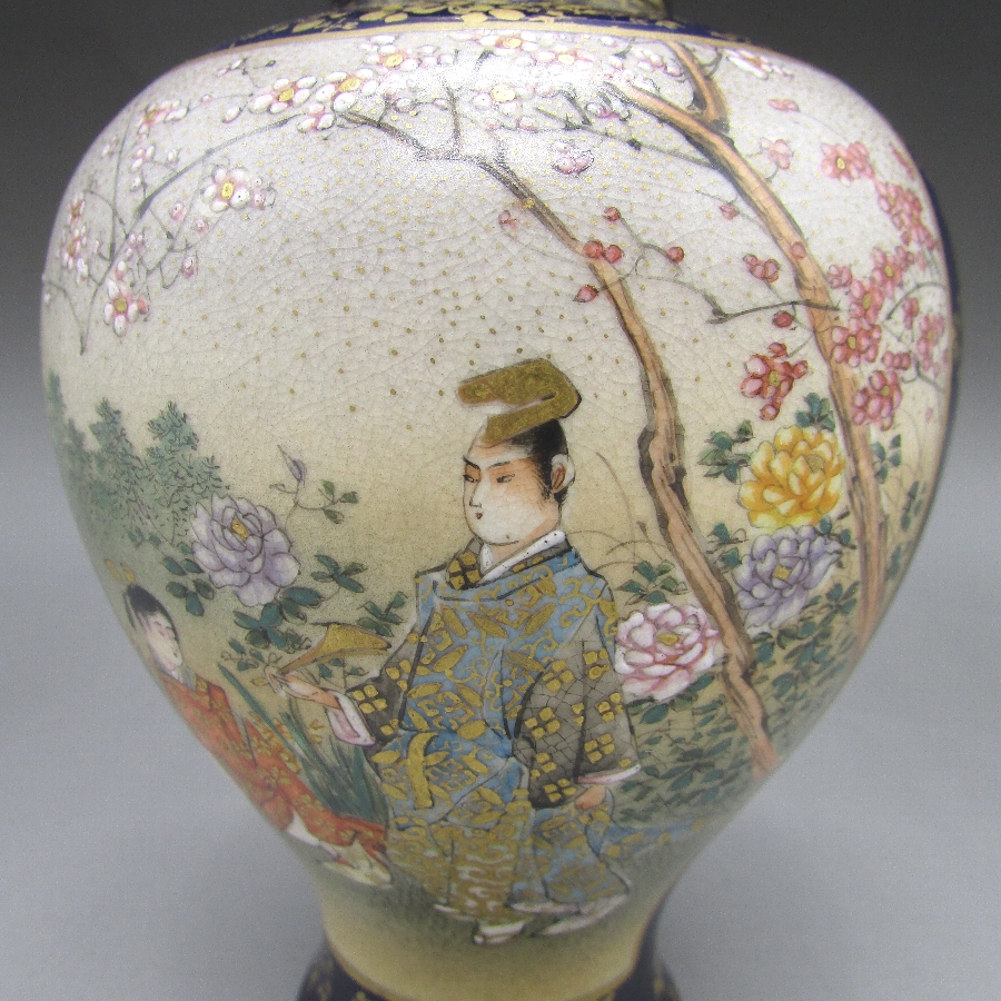 名称  薩摩焼 錦山 瑠璃地金襴手芸者文花瓶一対