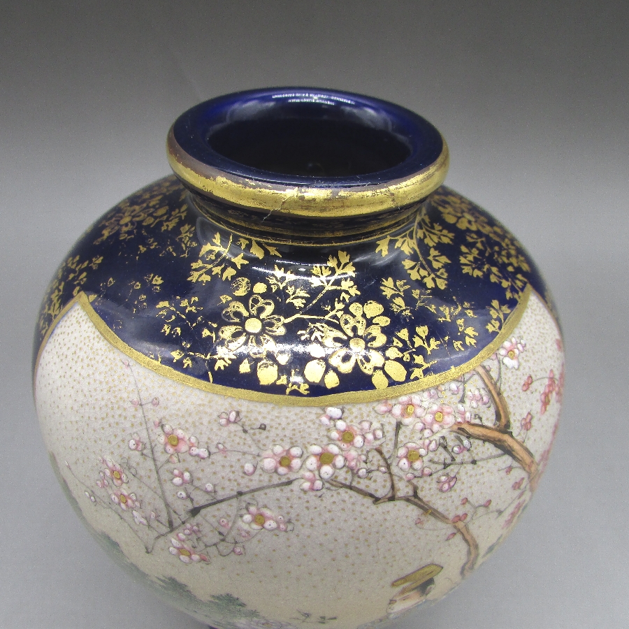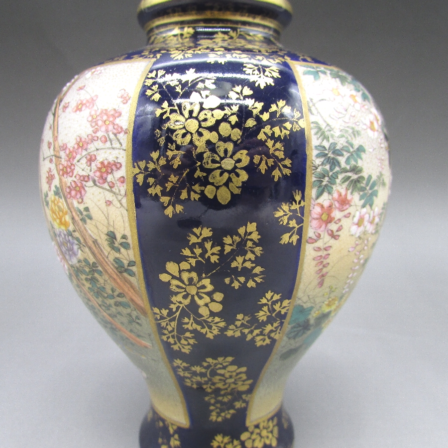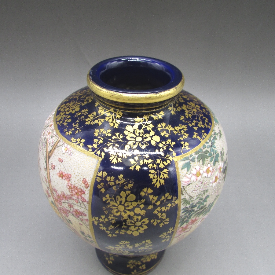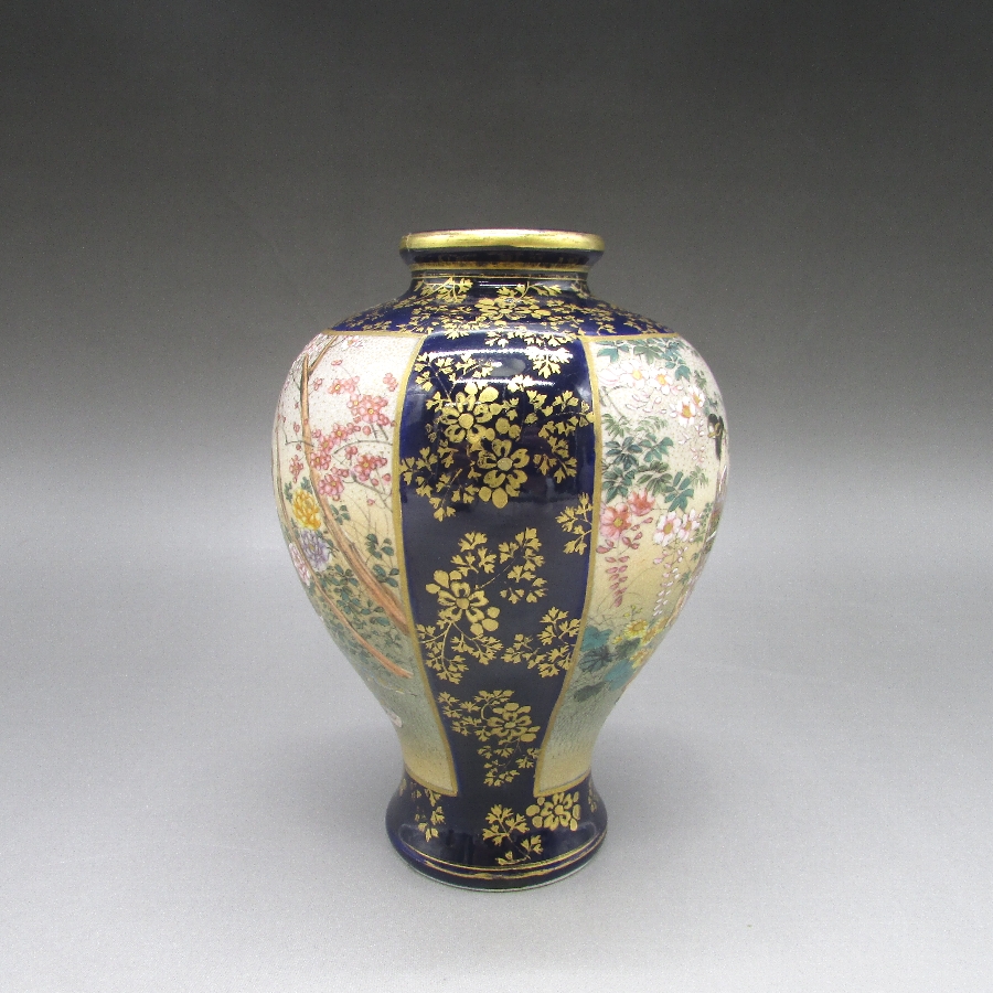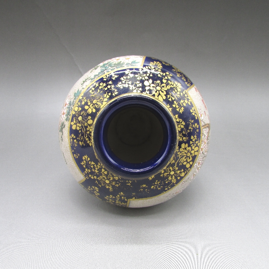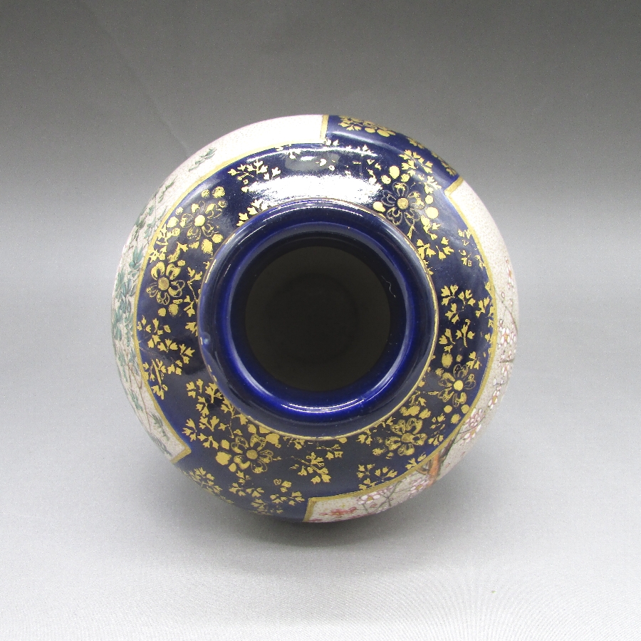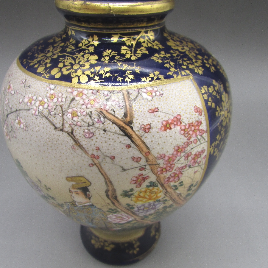 名称  薩摩焼 錦山 瑠璃地金襴手芸者文花瓶一対