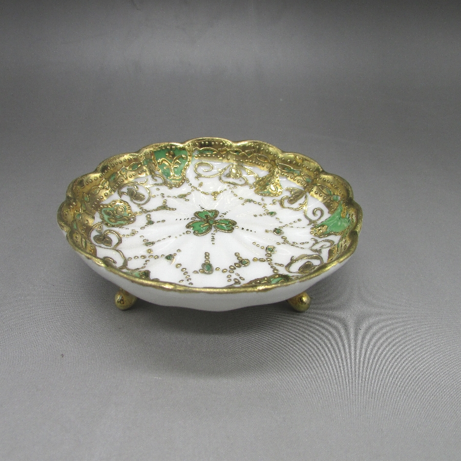 オールドノリタケ エメラルド地金盛脚付ボウル