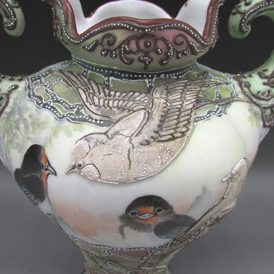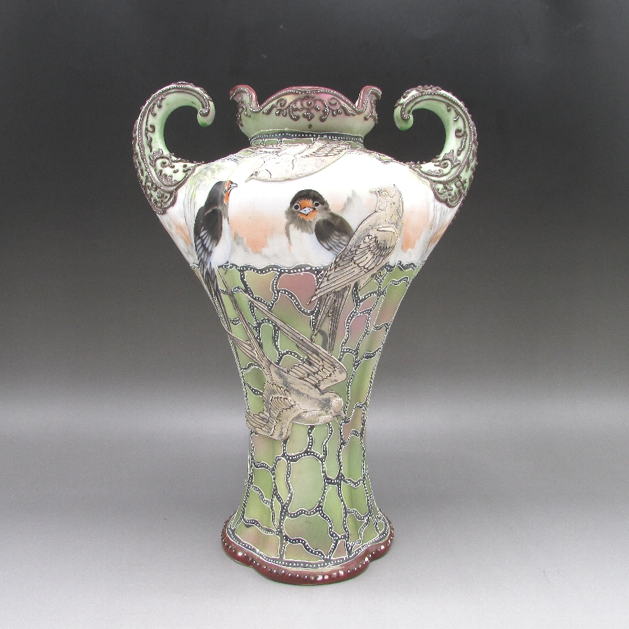 トップ > ラインナップ > オールドノリタケ一覧 Vol.006 > オールドノリタケ 盛り上げ燕文筋肉型花瓶