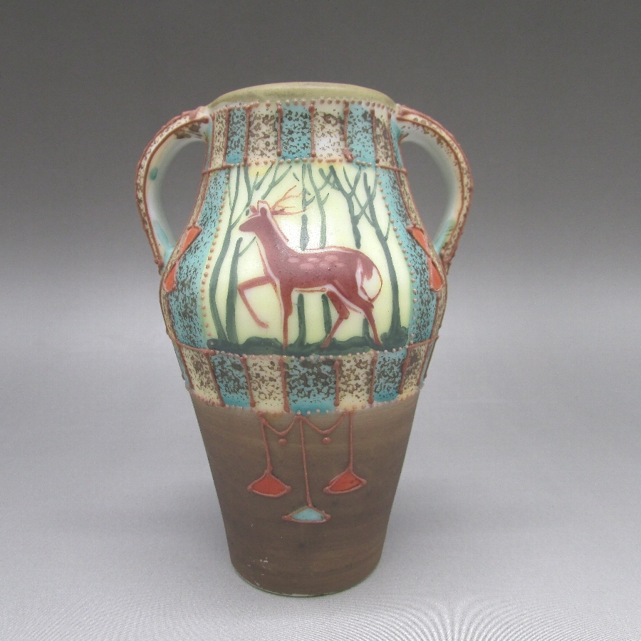 オールドノリタケのシルエット鹿文花瓶です。1911年頃~1921年頃にアメリカに輸出され、約100年の時を経て日本に里帰りしてきました。