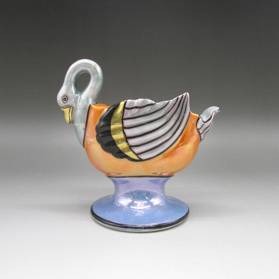 オールドノリタケの青鳥型シガレットホルダーです。1921年頃~1941年頃にアメリカに輸出され、約100年の時を経て日本に里帰りしてきました。オールドノリタケは現在のノリタケカンパニーが明治末期から戦前までに製造したアンティーク陶磁器の総称です。豪華絢爛な西洋風絵付け陶磁器は海外で人気を博しました。近年では、約100年という長い歳月を経て日本に里帰りしてきたことで、わが国でも大変人気が高くなっており、美術工芸品として高い地位を確保しつつあります。
