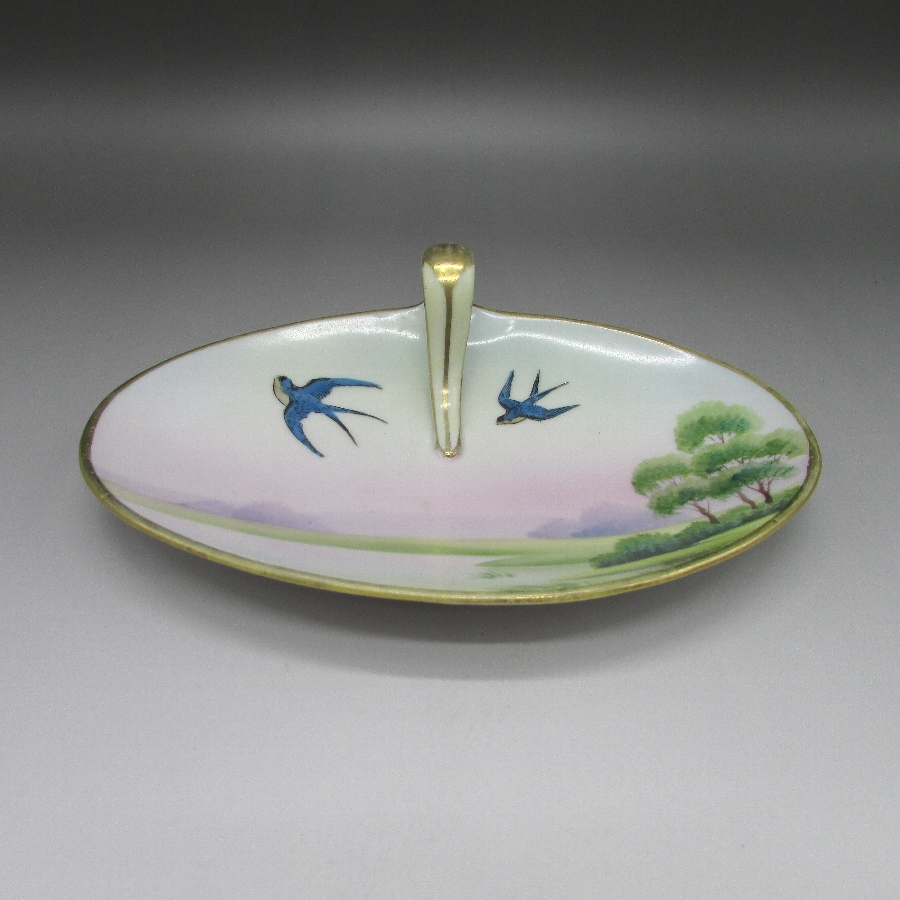 オールドノリタケの燕文把手付皿です。1911年頃~1921年頃にアメリカに輸出され、約100年の時を経て日本に里帰りしてきました。