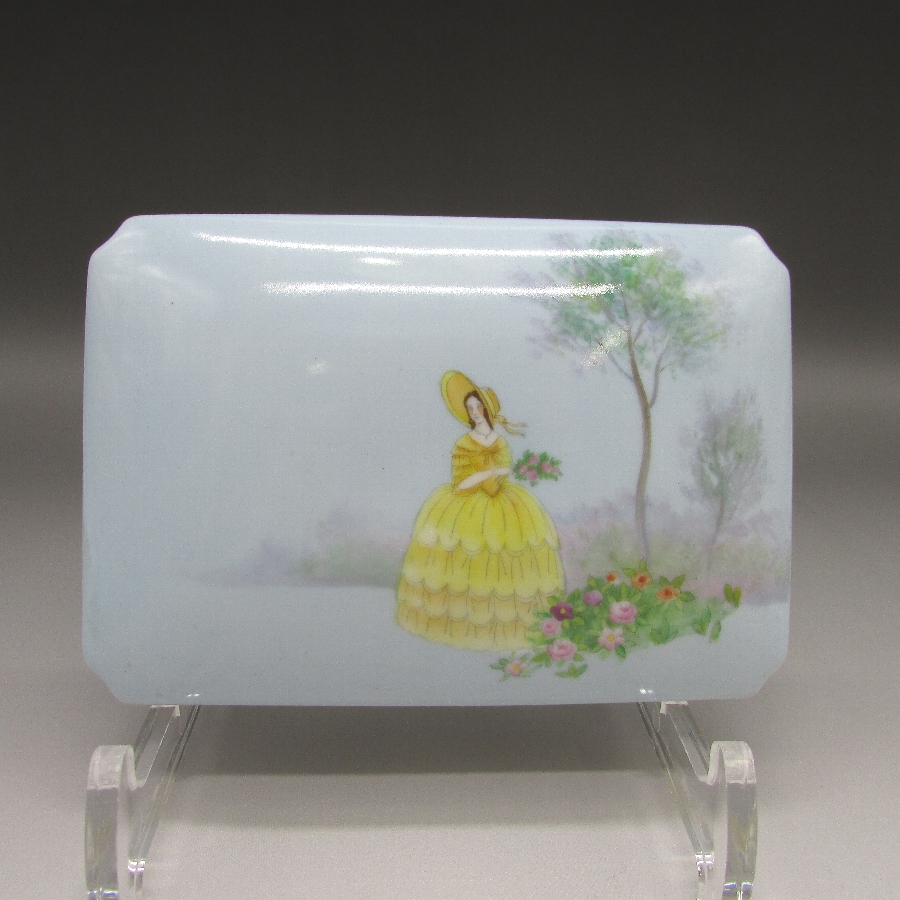 オールドノリタケのモーニングレディ宝物入れです。1921年頃~1941年頃にアメリカに輸出され、約100年の時を経て日本に里帰りしてきました。アールデコ期が過ぎ去った後に作陶された「モーニングレディ」シリーズの落ち着いた色彩の作品です。