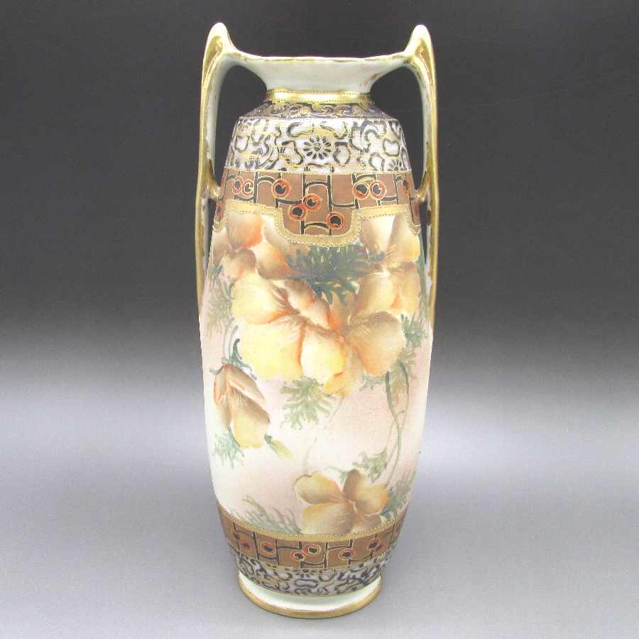 オールドノリタケの金彩花文花瓶です。1911年頃~1921年頃にアメリカに輸出され、約100年の時を経て日本に里帰りしてきました。