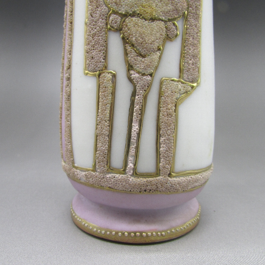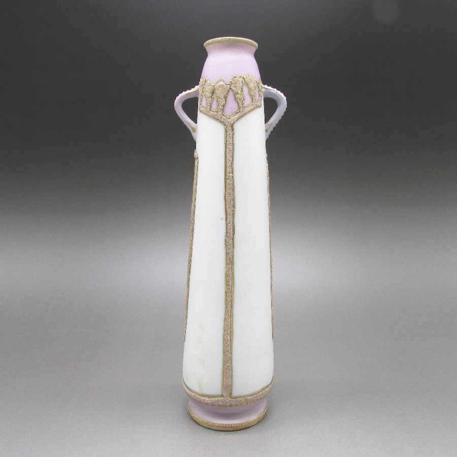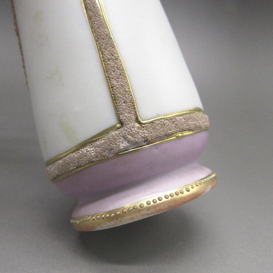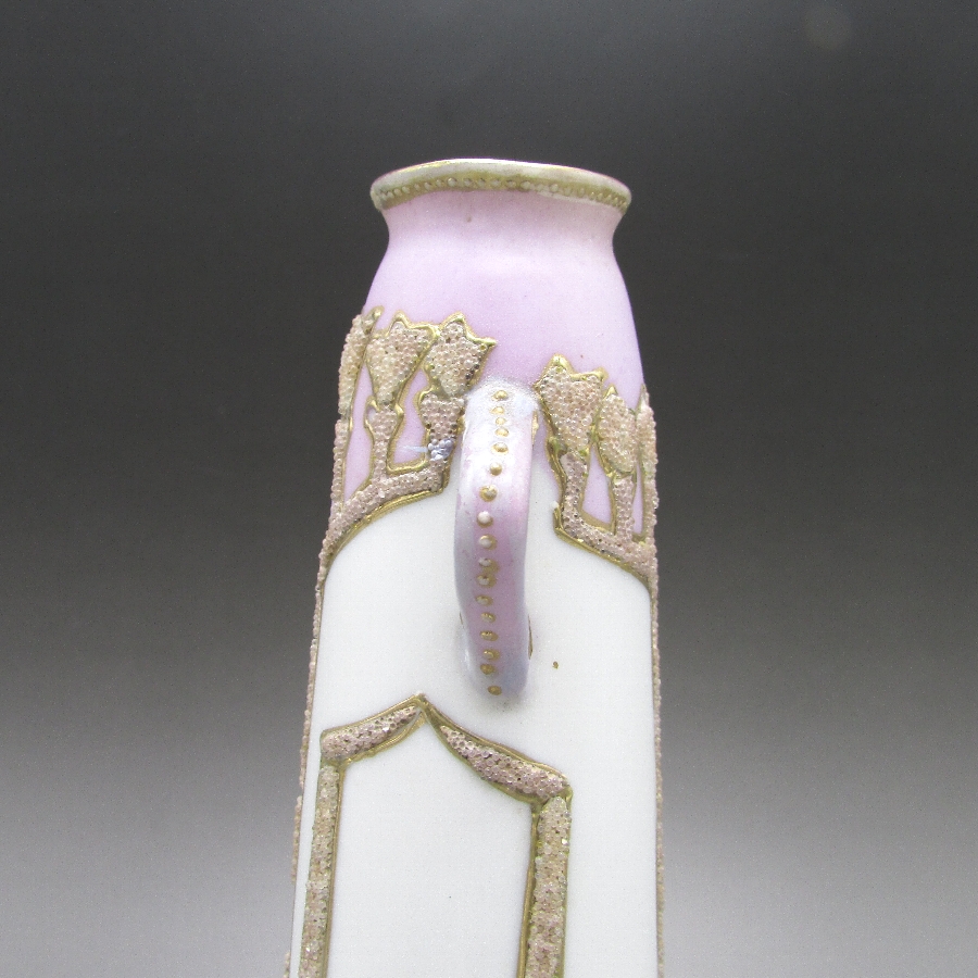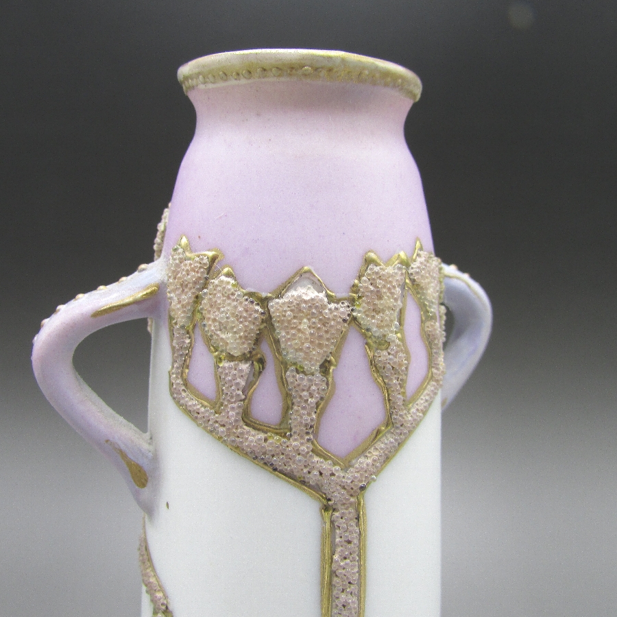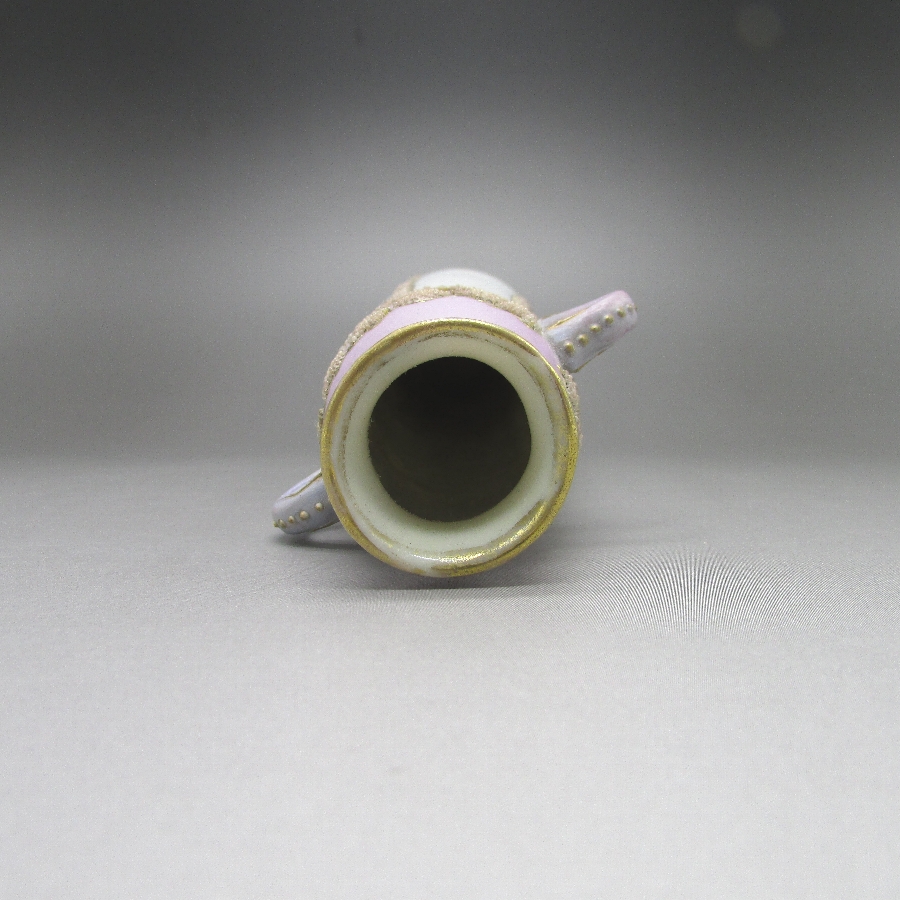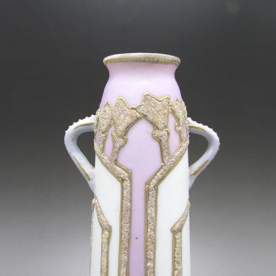 コラレンとは英語で「珊瑚のような(coralene)」という意味です。これは器面に施された細かなガラスビーズが珊瑚に似ていることからきています。ブランド名やメーカー名等ではなく装飾技法の一種になります。コラレンは作陶に繊細で難度の高い装飾技術を要するため、現存する作品数が少ない事から幻の近代輸出陶磁器を呼ばれています。オールドノリタケや名古屋製陶所、松風陶器等の近代輸出陶磁器の中でも他を凌駕する精緻な技術とデザインの美しさを持っています。