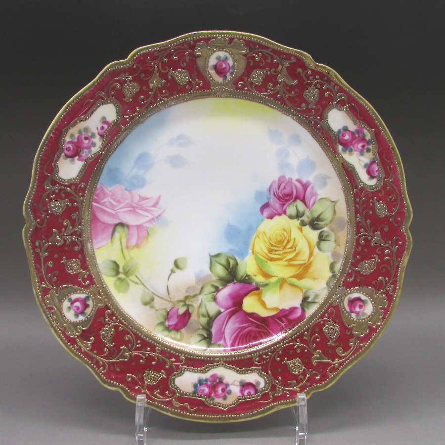 オールドノリタケ 金盛り薔薇文飾皿