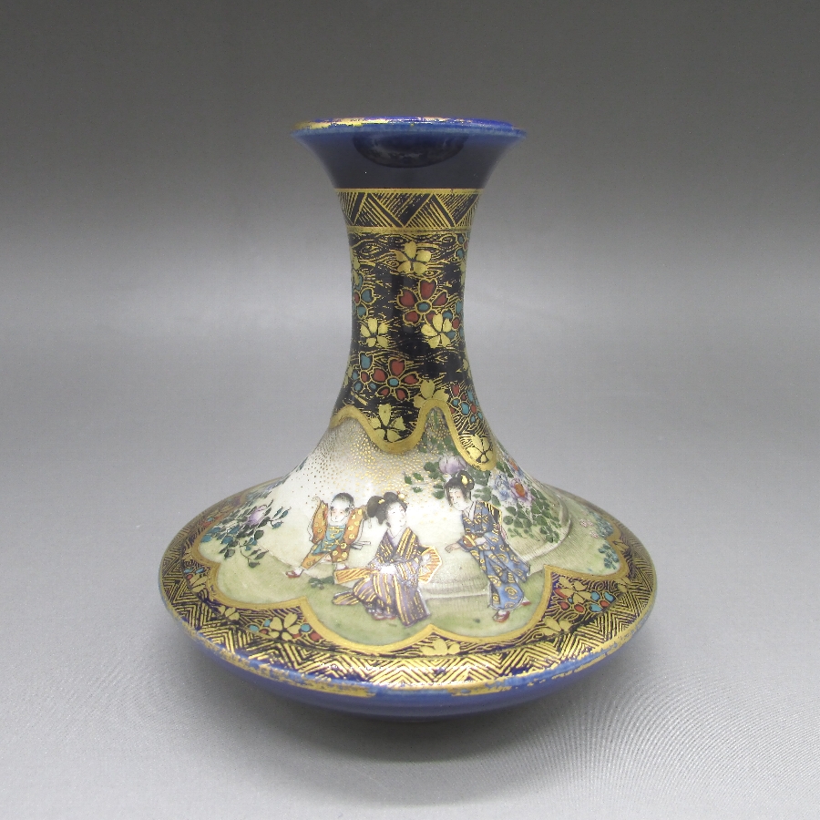 - 名称 薩摩焼 瑠璃地金襴手人物風俗文花瓶