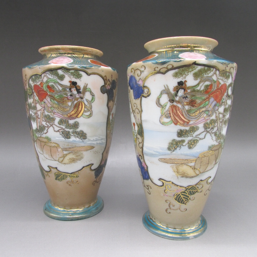 オールドノリタケ 浜辺天女文花瓶一対