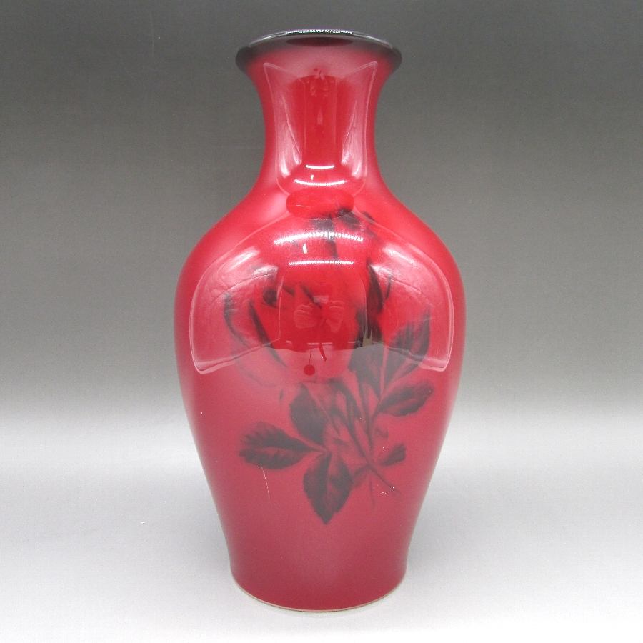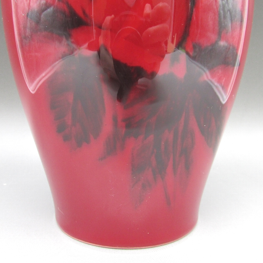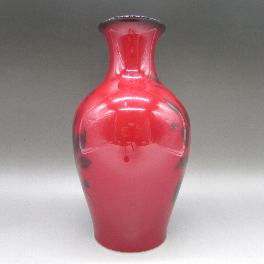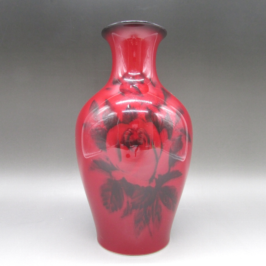 ボーンチャイナ辰砂釉花文花瓶の画像