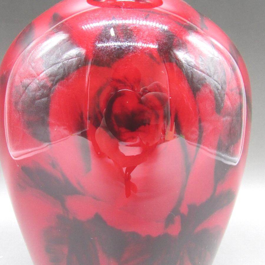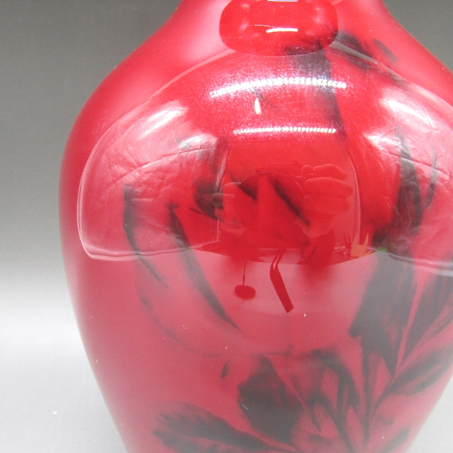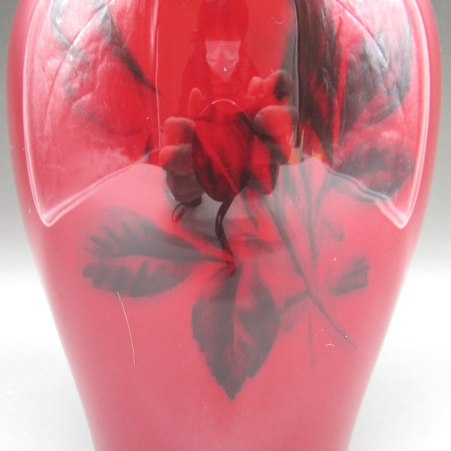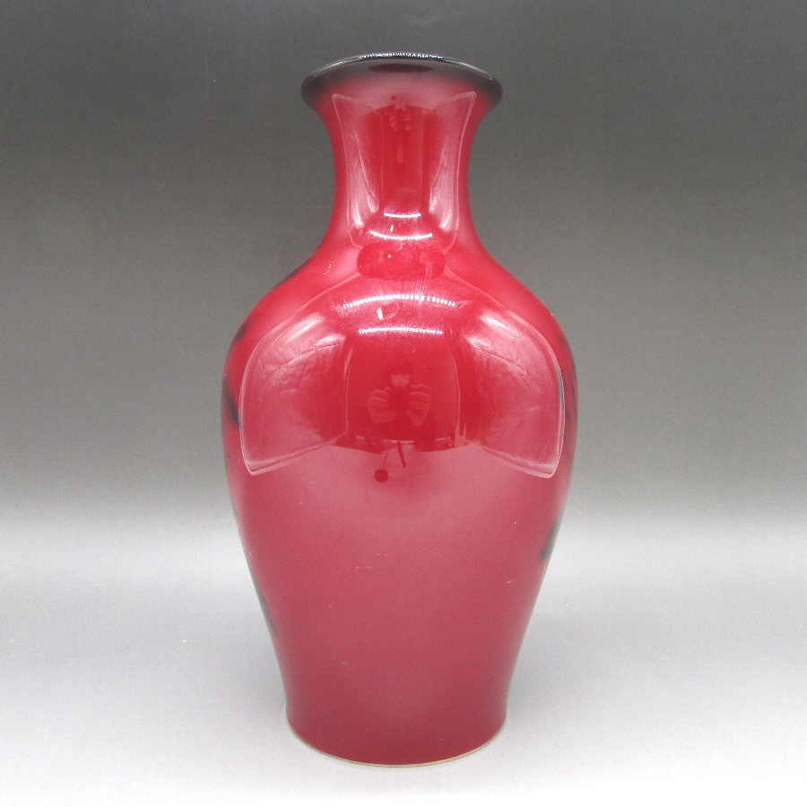 ボーンチャイナ辰砂釉花文花瓶の画像