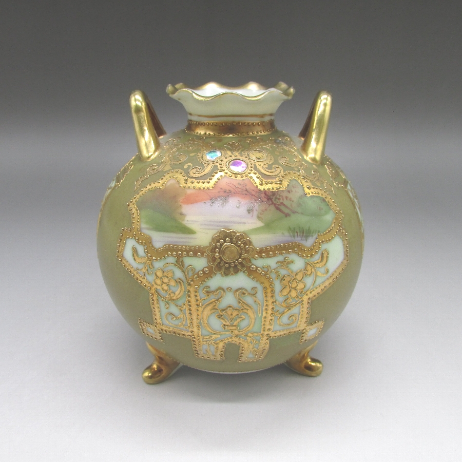 オールドノリタケ 金盛り風景文三脚付花瓶