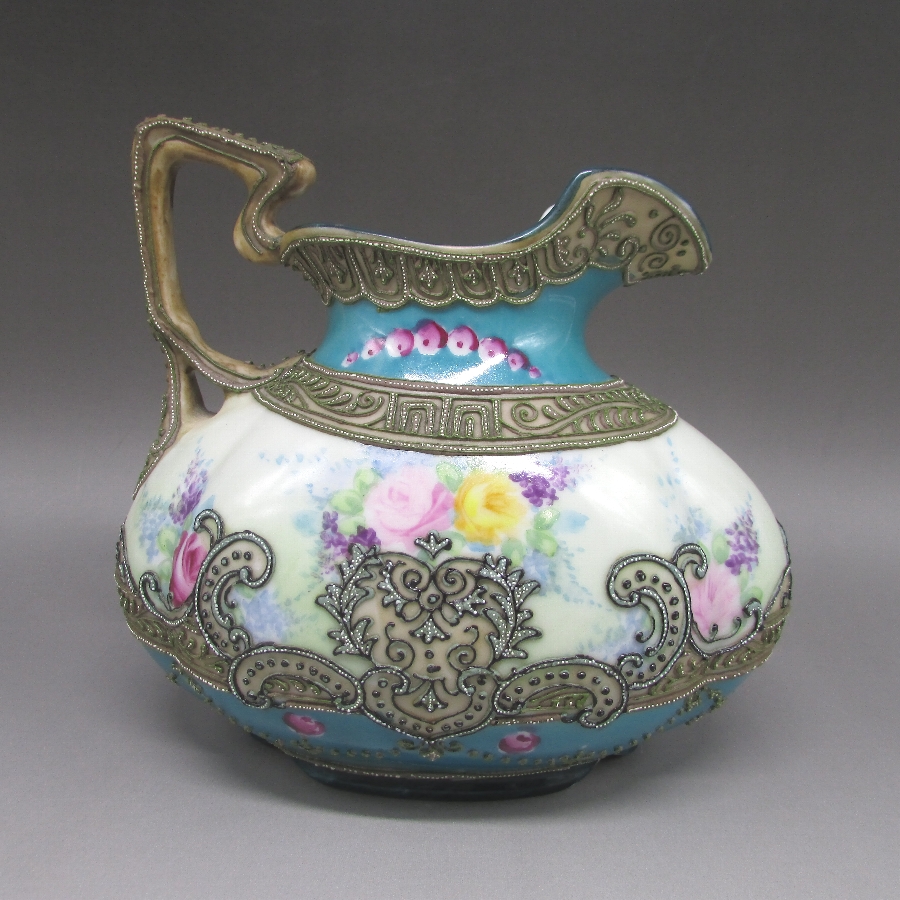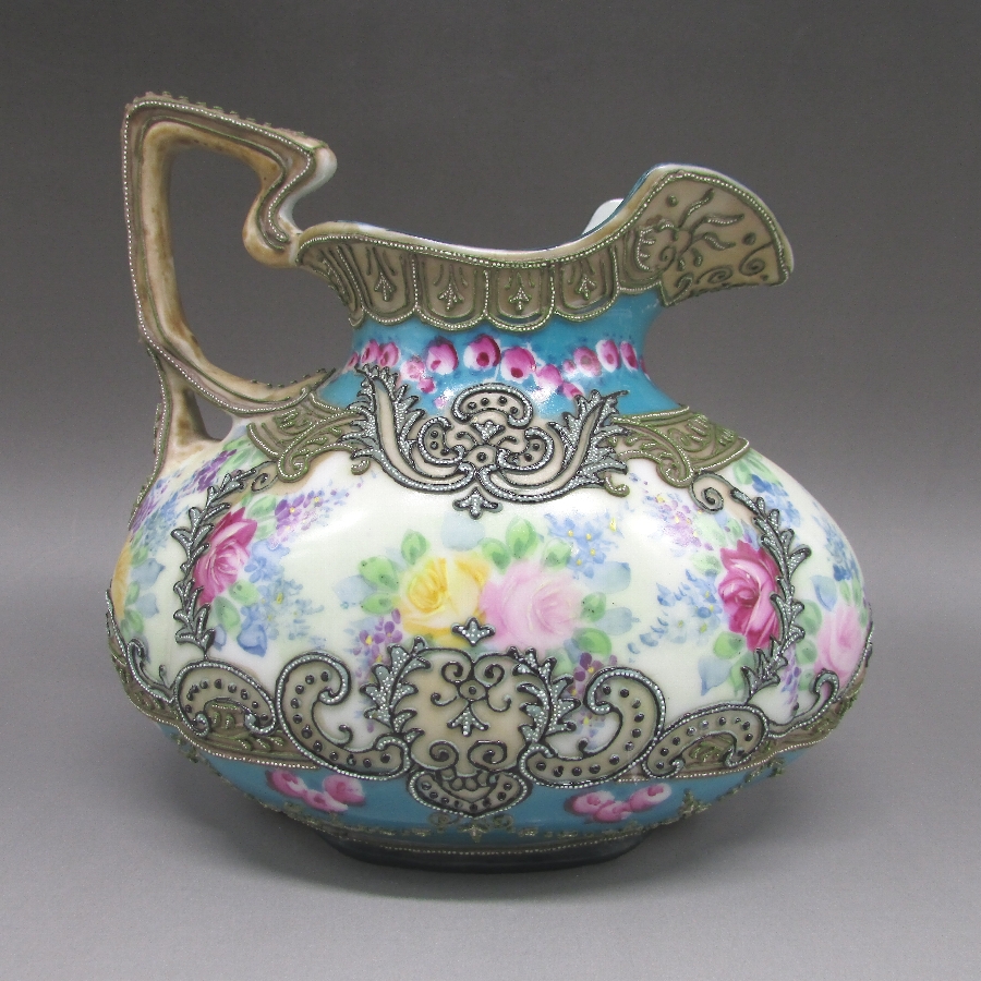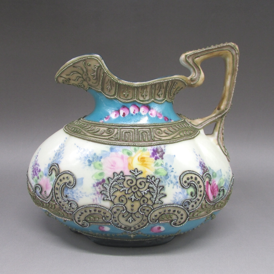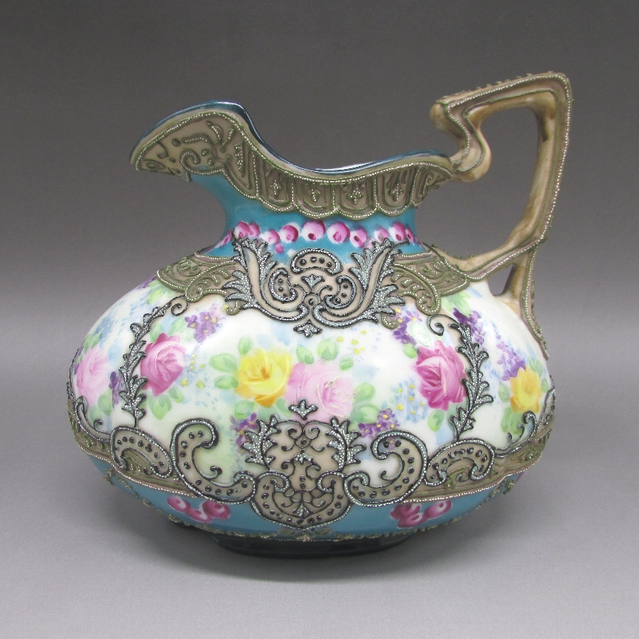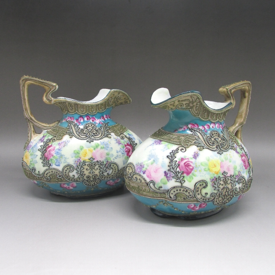 オールドノリタケ 盛り上げ薔薇文水差一対